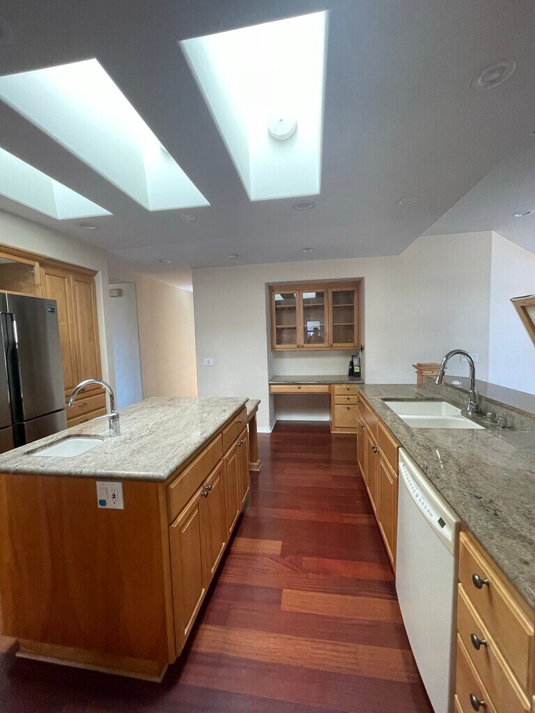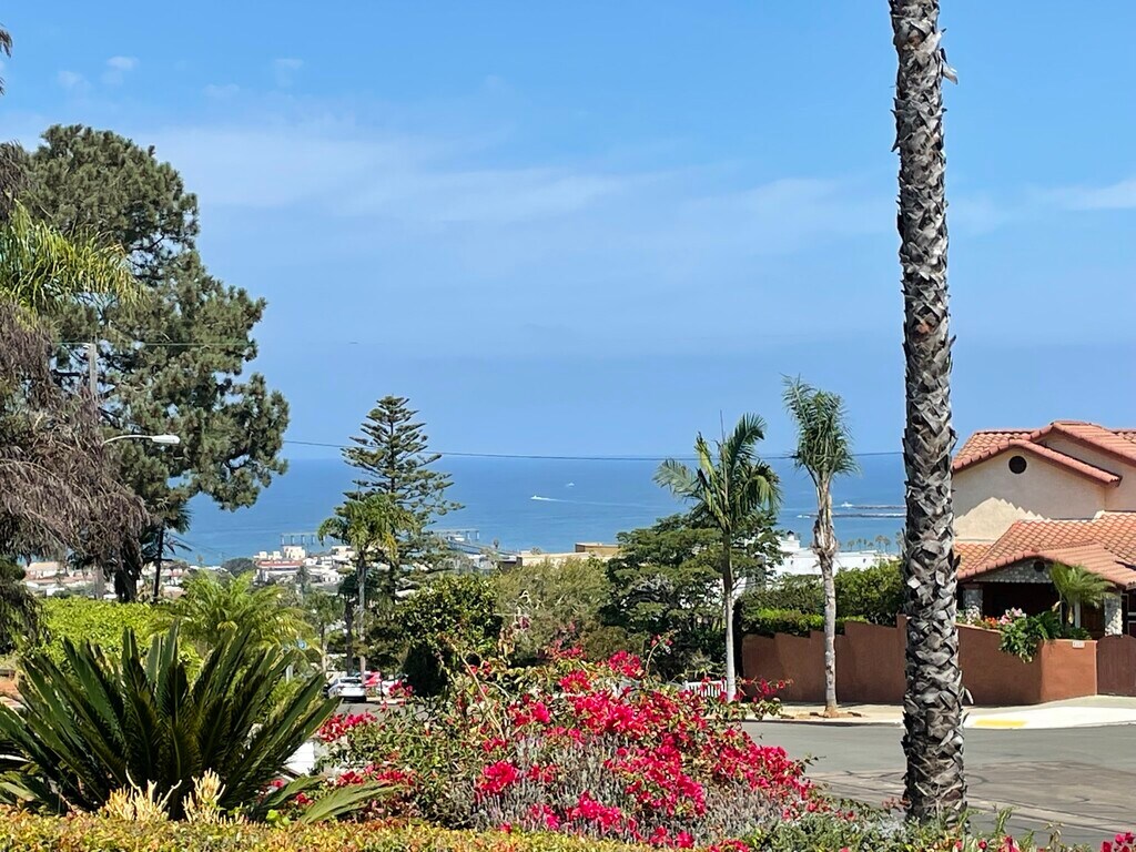 Beautifully remodeled view home! Spacious and bright with views to the north, ocean, sunsets, and views up the coast to the hills of Pacific Beach/La Jolla from the living room and front. Brazillian cherry floors throughout, and the living room features corner windows with views and a fireplace. The kitchen is open to the dining room and family room, perfect for entertaining! The extra large kitchen has granite counters, a large island with a prep sink, tons of counter space and storage plus a walk-in pantry! The dining room is open to the kitchen and family room, it has built-in cabinets for storage. The family room is spacious and has vaulted ceilings with a large stone fireplace and sliders to the backyard. Big wide halls to the bedrooms and bathrooms have a linen closet and cabinet. The bathrooms have been upgraded as well. The master bedroom is extra large and has plenty of room for a king bed plus extra furniture, there is a huge walk-in closet with a skylight. There is a door to the backyard as well. The backyard is spacious and inludes a gardener. Private use of the yard. There is a large laundry room, 2 car garage off alley. Sorry no smoking/vaping, pet on approval. Must see property prior to applications, facetime showings ok. Drive by then call agent Kira to view. CA DRE Lic#01214615 Beautifully remodeled view home! Spacious and bright with views to the north, ocean, sunsets, and views up the coast to the hills of Pacific Beach/La Jolla. Brazillian cherry floors throughout, and the living room features corner windows with views and a fireplace. The kitchen is open to the dining room and family room, perfect for entertaining! The extra large kitchen has granite counters, a large island with prep sink, tons of counter space and storage plus a walk-in pantry! The dining room is open to the kitchen and family room, it has built-in cabinets for storage. The family room is spacious and has vaulted ceilings with a large stone fireplace and sliders to the backyard. Big wide halls to the bedrooms and bathrooms have a linen closet and cabinet. The bathrooms have been upgraded as well. The master bedroom is extra large and has plenty of room for a king bed plus extra furniture, there is a huge walk-in closet with a skylight. There is a door to the backyard as well. There is a large laundry room, 2 car garage off alley.