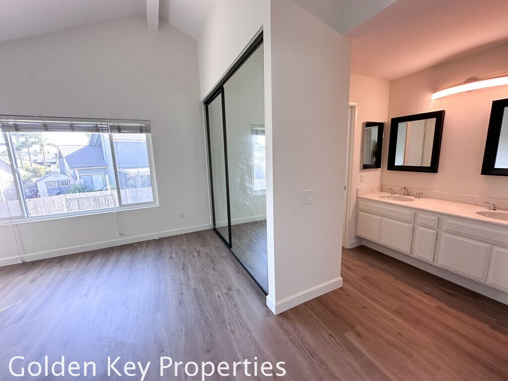 Nice two-story home in Oceanside! Spacious floor plan, vaulted ceilings, separate family room and sunken living room, fireplace, new laminate flooring in the living room and bedrooms, tile in the kitchen and family room. Kitchen with new countertops. Interior laundry area with washer/dryer hook-ups, family room with a newly installed countertop, mirrored closet doors in the primary bedroom, fenced backyard with a patio, and a three-car garage! Available 3/25/26.
