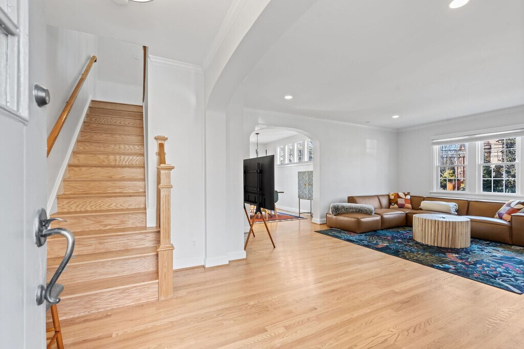 Welcome to this gorgeous, spacious, and fully furnished end unit townhome in the Tudor-inspired Foxhall Village neighborhood. Renovated in 2020, this home captures the neighborhood's character, balanced with space and elegant finishes for today's urban lifestyle. Feel at home in this townhome featuring three bedrooms and 2.5 baths. Upon entry, you are greeted with a large living room, centered around a fireplace and showered with natural light. The open kitchen and dining room features high-end appliances, granite counters, and plenty of storage space. A powder room completes the main level. Upstairs are two amply sized bedrooms and one full bath that has been recently renovated. For your convenience, laundry machines are both upstairs and in the basement. The fully finished, connecting basement is very versatile, with ample ceiling height, a full bath, a second kitchen, and a street-level entrance. Double pane windows bring in lots of natural light while keeping the home peaceful, and the grounds surrounding the home are professionally landscaped. Foxhall Village is a historically designated community of about 350 homes. Its award-winning Tudor architecture is as pleasing and livable today as it was when built in 1927. The Village is nestled into a niche adjacent to Glover Archbold Park, as close as you can get to the urban side of the city but still retain a sense of quiet serenity. Foxhall has excellent access roads, commute to Downtown or the Hill via Whitehurst Fwy in only minutes. Access to Rosslyn by Key Bridge, or Tysons by Chain Bridge is painless, as well as getting uptown to Chevy Chase or Bethesda. Foxhall is surrounded by nature with the Glover Archbold a block away, and nearly immediate access to the C&O Canal, tow path, Crescent Trail, and Fletcher's and Key Bridge Boathouses on the Potomac River. The Hardy Recreational Center, playground, and playing field are two blocks away. Public Schools are Key, Hardy, and Wilson. There are eight private schools less than a mile away, including the Washington Lab School. A background check is required upon booking. Parking is available for an additional $10 per day [SI]
