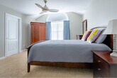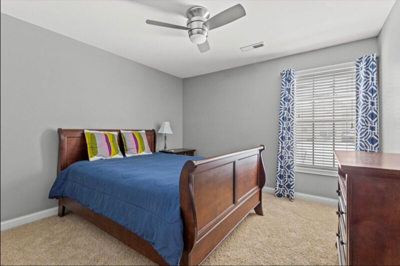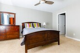 Property Id: 2127427 Spacious, beautiful, very well-maintained 3 big size bedroom/2 1/2 bathroom. You will be in awe as you enter the home with 9'ceilings on the 1st floor, 36 cherry kitchen cabinets with crown molding, and black appliances and dining area... The family room features an electric fireplace with a built-in bookcase and bookshelves. The second floor features a Master fit for a king and queen with a Palladian window and a very large walk-in closet. The master bath has a shower tub, double bowl vanity and closet. Two additional bedrooms, a full bath and the utility room. A laundry with a Washer and Dryer included, complete the second floor. The townhouse is furnished - two beds, two bedside tables, two mattresses, one wardrobe, two dressers, one mirror and one table with four chairs. There are also 2 TVs. One-car covered garage. Owner pays for HOA. The HOA covers landscaping and trash.