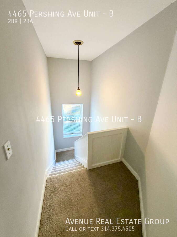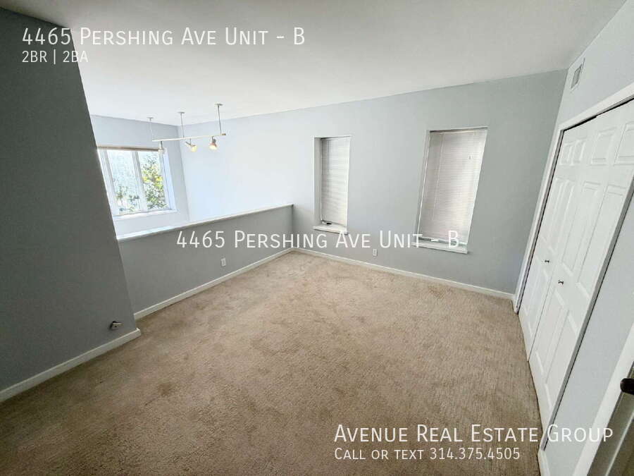 Live in style in the heart of the Central West End. This spacious 2-bedroom, 1.5-bath condo blends modern updates with classic St. Louis charm, just steps from Forest Park, Barnes-Jewish Hospital, and Washington University Medical Center. The main level features an open floor plan with tall ceilings, large windows, and warm hardwood flooring. The kitchen offers granite countertops, white shaker cabinets, stainless steel appliances, and bar seating that opens to a cozy dining area accented by a bold navy wall and modern lighting. Upstairs, the loft overlooks the living space and makes the perfect home office or flex room. Both bedrooms are generously sized, and the full bath includes a dual-sink vanity and updated fixtures, with a convenient half bath and in-unit laundry on the main level. Outside, enjoy a private fenced backyard — a rare find in this neighborhood — ideal for entertaining, pets, or relaxing outdoors. Located on a tree-lined street surrounded by historic architecture and top-rated restaurants, this Central West End condo offers the perfect mix of comfort, character, and convenience.Ac + Heat