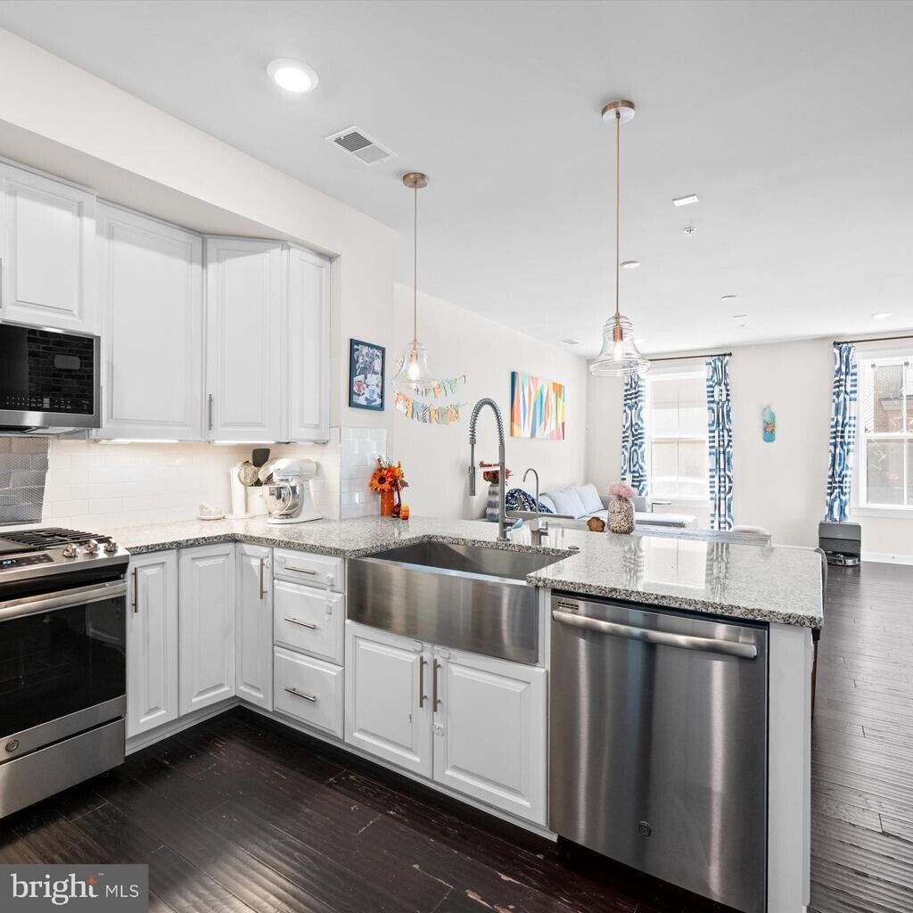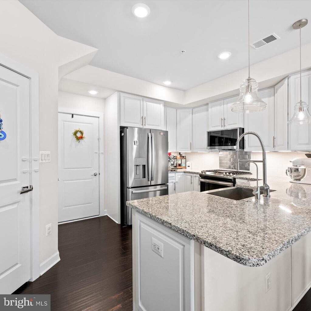 This exquisite two level condo-townhome features 3 bedrooms, 2 full bathrooms, 1 half bath, and a 1-car garage, offering a rare opportunity to lease within walking distance of all that One Loudoun has to offer. The main level welcomes you with a warm and inviting living room highlighted by an exposed brick accent wall, adding character and architectural charm. Pre-installed TV wall mount brackets allow for a clean, seamless setup. The kitchen features chic countertops, stainless steel appliances, and a reverse osmosis (RO) water filtration system, providing access to purified drinking water (tenant responsible for routine filter changes and upkeep). The space opens beautifully into the living area, making it ideal for both everyday living and entertaining. A spacious pantry, convenient half bath, and direct garage access complete this level. The upper level offers a generously sized primary suite featuring an elegant statement chandelier, two walk-in closets with custom built-in systems, and a luxurious en-suite bath with dual vanity and a walk-in shower. Guest bedroom one includes a custom closet system and a private balcony perfect for enjoying your morning coffee or evening unwind. The second guest bedroom is spacious with a large reach-in closet. A full hallway bath and conveniently located laundry complete this level. The garage includes an optional stationary exercise bike available for tenant use at no additional cost, which can be removed if not needed. The home provides convenient parking with a private driveway space, along with ample guest parking throughout the neighborhood. Residents enjoy access to exceptional community amenities, including a swimming pool, park, clubhouse, indoor basketball court, tennis courts, volleyball and soccer fields, playgrounds, picnic areas, bike trails, all complemented by lawn maintenance for added ease. The location is truly unbeatable, with premier shopping, dining, and entertainment just steps away, including Trader Joe's, Barnes & Noble, Alamo Drafthouse Cinema, Matchbox, Ted’s Bulletin, Sense of Thai St., and Big Buns Damn Good Burgers. You’ll also enjoy the vibrant One Loudoun Farmers Market, along with a variety of restaurants, cafés, salons, and shops. Ideally situated, the home is just 10 minutes from Washington Dulles International Airport and approximately 3.5 miles from the Washington Metro Silver Line, offering easy access to the surrounding region.
