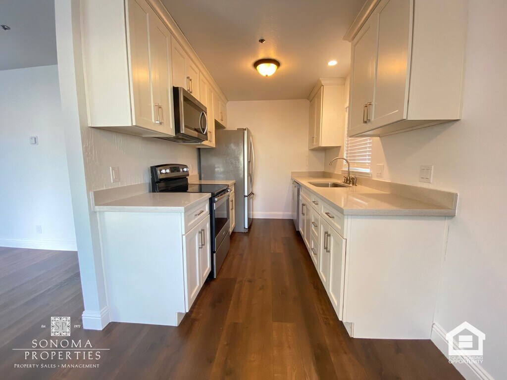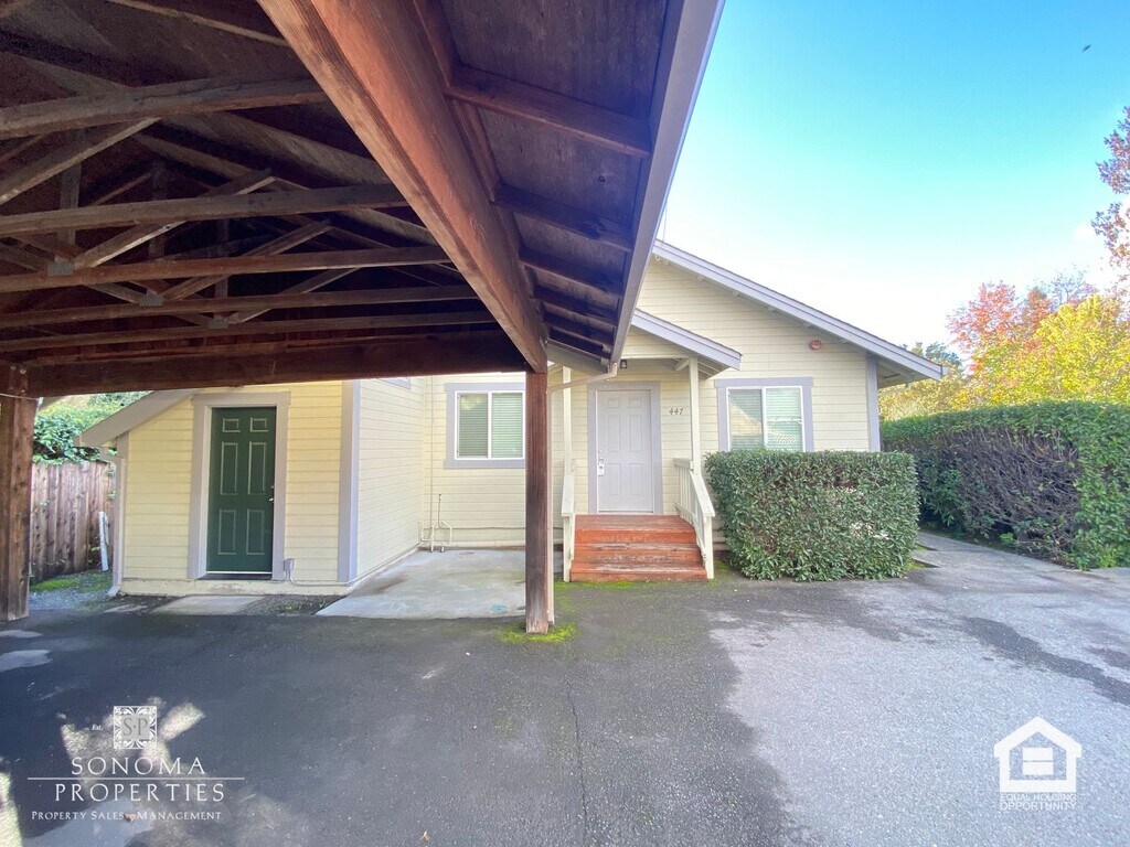 Welcome to this 2BD/1BA Duplex in Downtown Sonoma! Water is included! This unit boasts stainless steel appliances and quartz countertops, along with a gated patio that is perfect for outdoor activities. It features hardwood flooring throughout, a carport, and the primary bedroom has a sliding door that opens to the gated patio. On-site laundry facilities are available for your convenience. The location is just minutes away from Sonoma Plaza, as well as various shops and dining options. Pets are negotiable, and no smoking is permitted. Available on a one-year lease term. For more information or to schedule a viewing, please contact Sonoma Properties at . Sonoma Properties DRE License #01931046