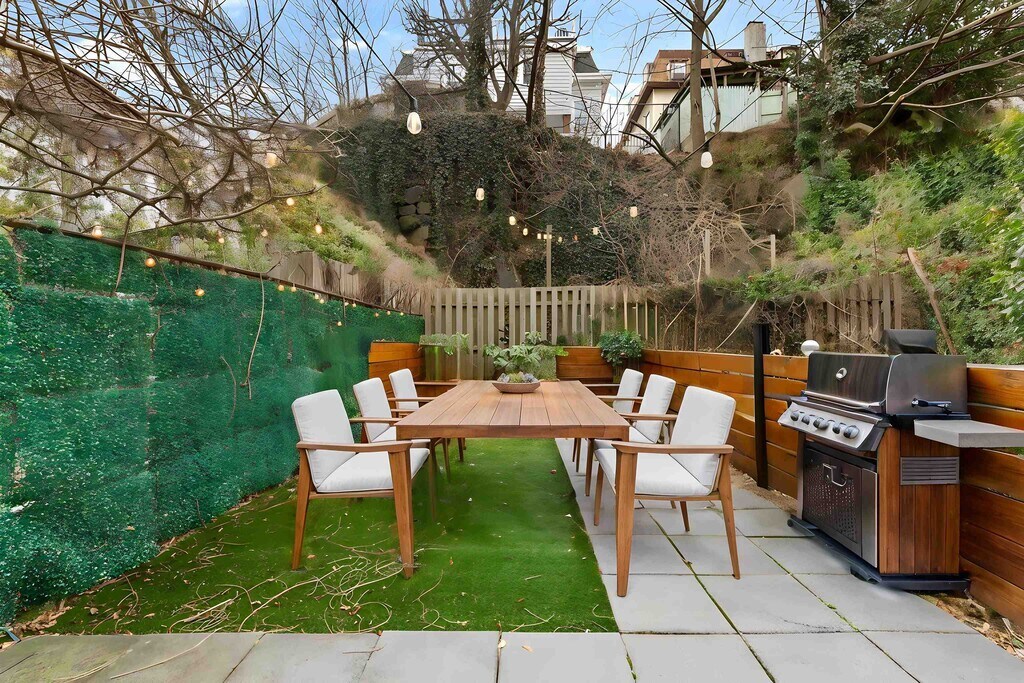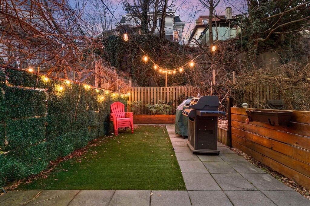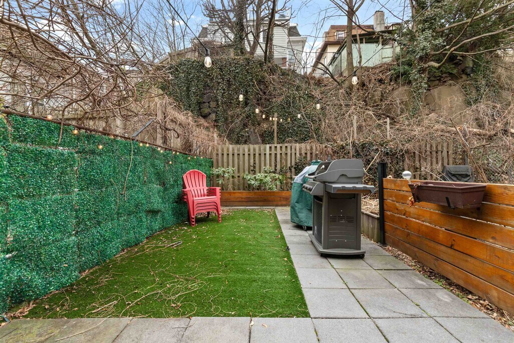 Welcome to 447 Pavonia Ave Unit 1L, a beautifully renovated 1-bedroom, 1-bath home offering approximately 680 square feet in Jersey City’s desirable Hilltop neighborhood. This thoughtfully designed residence features a stylish railroad-style layout, hardwood floors, exposed brick accents, and an open-concept kitchen, along with a wet bar/coffee station with mini fridge. The modern bathroom includes a sleek LED mirror, and the home is further enhanced by one of its most unique features, a spacious private backyard, perfect for entertaining or relaxing. Additional conveniences include a private basement storage unit and free shared laundry (2 washers and 2 dryers). Located just steps from Downtown Jersey City, the property is approximately a 10-minute walk to Journal Square PATH and 15 minutes to Grove Street PATH, with easy access to Manhattan (20 minutes to WTC, 30 minutes to 33rd Street) and a bus stop just 3 minutes away. Surrounded by local favorites such as Healy’s, Cellar 335, and Jane Doe, this home offers both lifestyle and accessibility. Pet-friendly for cats and set within a small, welcoming building, this is a rare opportunity to enjoy modern living with exceptional outdoor space.