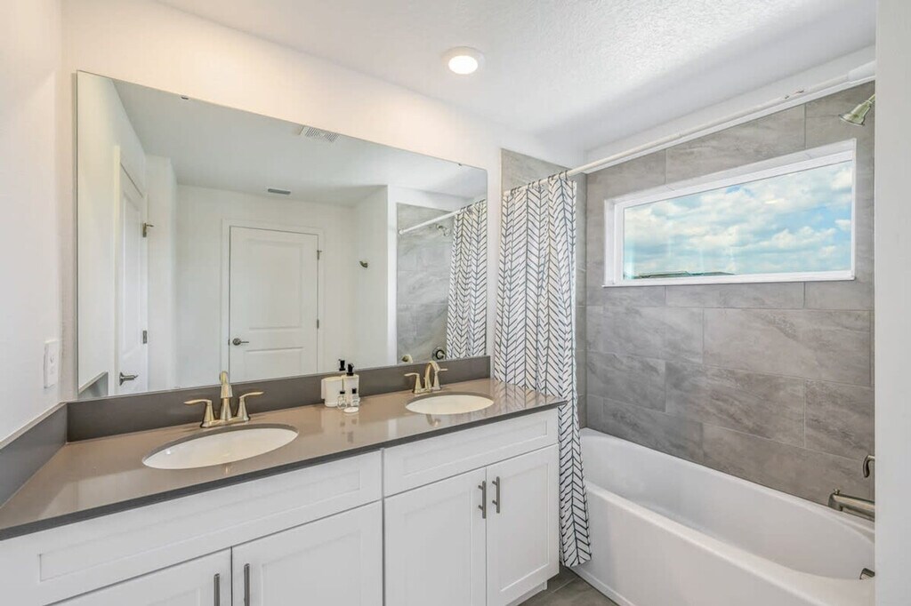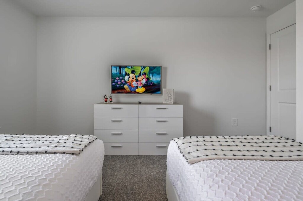 Nestled in the prime location of Storey Lake, Kissimmee's premier resort, discover this exquisite 4-bedroom townhome, tailor-made for unforgettable family or friend getaways. Close to Disney parks and surrounded by diverse eateries and shops, it provides seamless access to major attractions. Step inside to a luminous haven adorned with chic decor. Two enchanting themed bedrooms, Mickey and Minions, infuse a playful spirit. The modern integrated kitchen seamlessly merges with the living space, creating a hub for culinary delights and social bonding. A private pool awaits outside for serene relaxation. Step into this exquisite 4-bedroom townhome, a realm of luxury and elegance that unfolds before you. The moment you step inside, the allure is palpable. The expansive living room, adorned with impeccable taste, seamlessly blends with a fully equipped kitchen, ensuring both style and functionality. A private heatable pool beckons, a refreshing oasis for sun-soaked days when a leisurely dip is all you need. On the first floor, a king-sized bedroom awaits, while upstairs, a master suite boasts another king-sized haven complete with a private bathroom. Two more bedrooms share the second floor, each reflecting unique themes. One boasts Minions-inspired decor, graced with a full and twin bed, while the other exudes Mickey-themed charm, also furnished with a full and twin bed. Practicality intertwines with luxury as a laundry room with washer and dryer simplifies routines. Complimentary WiFi, free parking, and a thoughtful welcome kit with essential amenities further enhance your stay. Here, every detail converges to craft an unparalleled escape, ensuring your vacation is nothing short of remarkable. Replenishment of bathroom and kitchen amenities is the guest's responsibility. Heating the pool is a paid service and there is also a fee charged to use the barbecue grill. Storey Lake Resort has the perfect location just 10 minutes from all major attractions and theme parks in Orlando, including Walt Disney World, Universal Resort, and Sea World. You will find fantastic resort amenities for the whole family to enjoy with a tiki bar, a resort-style pool with slides and lazy river, sports court, mini-golf, kayak, and fitness center. There are 2 clubs inside the property, one of them with a themed pirate pool that kids will love is just walking distance from the house. Located just off Osceola Parkway, the resort has easy access to restaurants, shopping, and supermarkets, everything with just a 5-minute drive distance. Quiet hours are between 22:00 and 8:00. [SI]