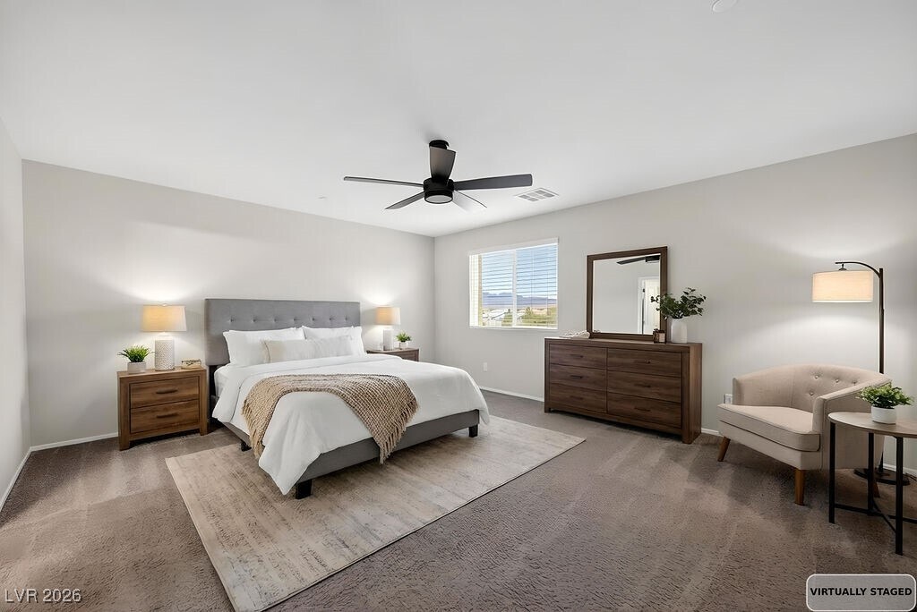 INCREDIBLE OPPORTUNITY! This like-new home has been barely lived in and still feels (and smells!) brand new. Sitting on a desirable corner lot that backs to a beautiful park, this property offers privacy, views, and extra breathing room. Located inside a gated community and perfectly positioned between Nellis AFB and Creech AFB it draws a large Air Force crowd. Step inside to a wonderfully functional layout featuring a downstairs bedroom with a full bathroom—perfect for guests, multigenerational living, or a home office. Upstairs, enjoy a spacious loft, a generous primary suite with a massive walk-in closet, and well-appointed secondary rooms. A whole-home water refinement system adds an extra layer of luxury and efficiency, rounding out this already exceptional property. Immaculately maintained and truly move-in ready, this one is a must-see! Rental in this condition and location don’t come around often!