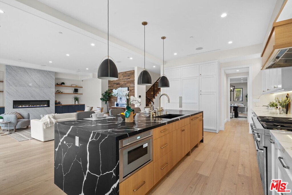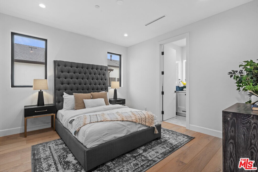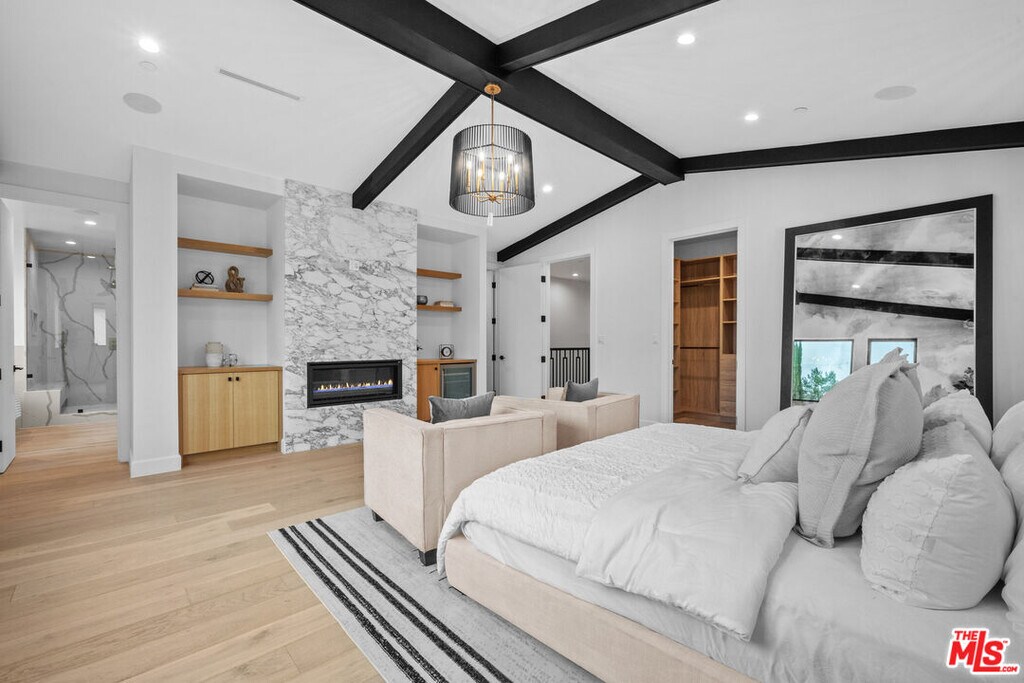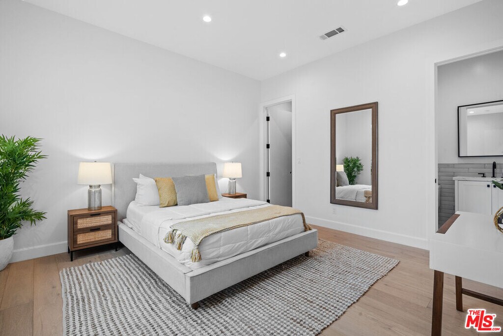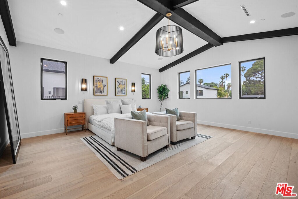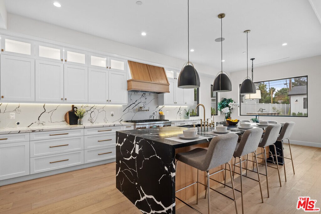 (Available July 1) This stunning modern farmhouse, built in 2023, is centrally located in Sherman Oaks and showcases exceptional craftsmanship and design throughout. Meticulous attention to detail is evident in every corner, with thoughtfully curated finishes that perfectly complement the home's contemporary aesthetic. The open-concept floor plan offers a seamless flow, ideal for both entertaining and everyday living. The chef's kitchen is equipped with top-of-the-line appliances and features a charming breakfast nook for added convenience. The main residence includes 5 bedrooms and 5.5 bathrooms, with 4 bedrooms situated upstairs and 1 bedroom on the main level. The expansive primary suite is a true retreat, complete with dual walk-in closets and a spa-inspired bathroom. In addition to the main home, the property features a substantial guest house/ADU (approximately 1,300 sq. ft.), offering a full kitchen, spacious living and dining areas, in-unit laundry, 2 bedrooms, and 2 bathrooms. Set on beautifully landscaped grounds, the property is gated enhancing both security and curb appeal. Outdoor amenities include a pool and spa, a BBQ area with a full outdoor kitchen, and a fire pit creating an ideal setting for entertaining and relaxation. MLS# 26722351