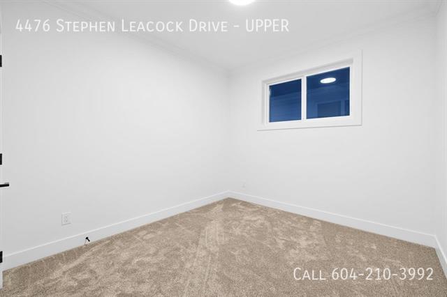 Bedrooms: 4 + Den Bathrooms: 2.5 Pets: w/ Approval No Smoking Utilities: Tenant to Pay 65% Available: Now One Year Lease Required Security Deposit: Half Months Rent Pet Deposit: Half Months Rent Lovely upper family home. Main floor has a spacious office as well. All ceilings are very high to give an airy spacious feel. 4 generous bedrooms, 2 full bathrooms and a great 2 piece bathroom on main floor. All closets have organizers. Fabulous spice kitchen with gas range, dishwasher, and pantry. Excellent open living, dining, and main kitchen with plenty of cabinets, large windows and security viewing screens! Please call Ace Property Management at - Ext-1 to book a viewing. Reference the address: “4476 Stephen Leacock Dr - UPPER”