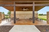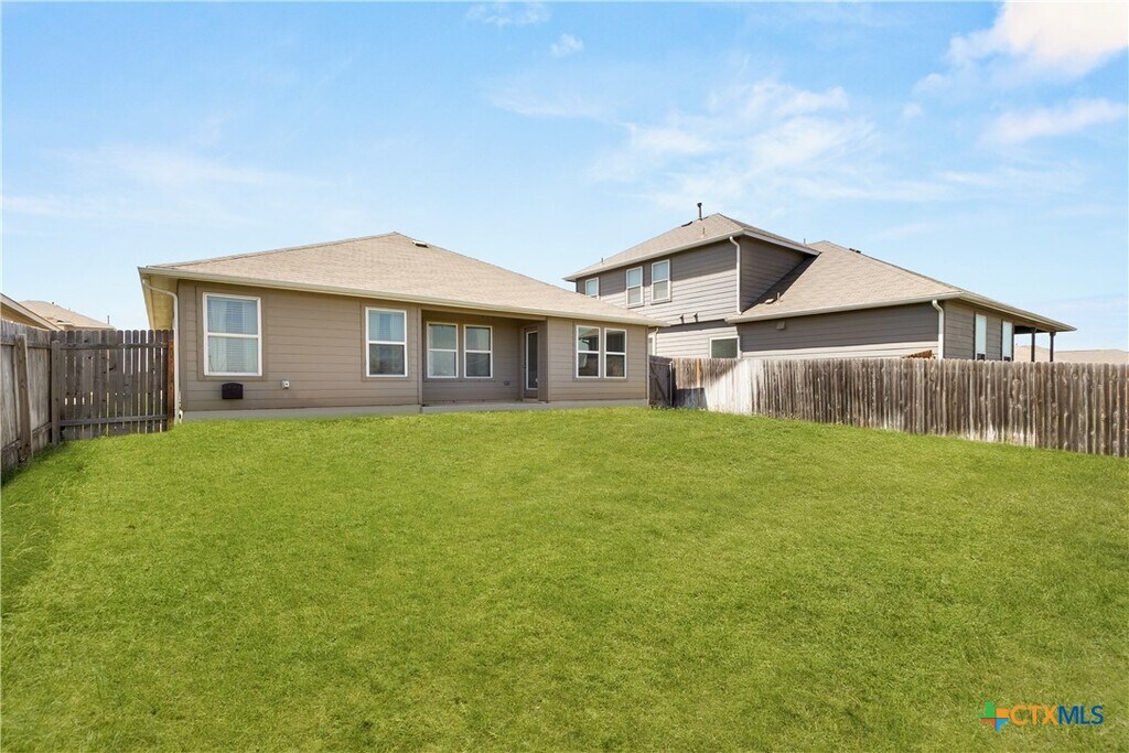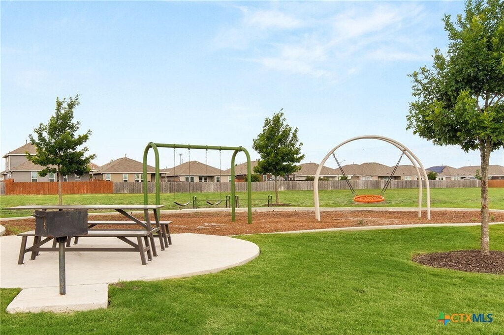 Well-maintained single-story home offering 3 bedrooms,2 bathrooms,and 1,458 sq ft of open-concept living. Spacious living area flows into the kitchen featuring a center island,granite countertops,ceramic tile backsplash,stainless steel Frigidaire® appliances,and breakfast bar. Dining area opens to a covered patio—perfect for outdoor enjoyment. Private primary suite includes a large bedroom,en-suite bath with separate tub and shower,and walk-in closet. Additional features include 2" faux wood blinds,full irrigation system with sod,and rain gutters. Subdivision provides a community pool and playground