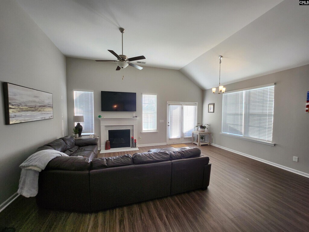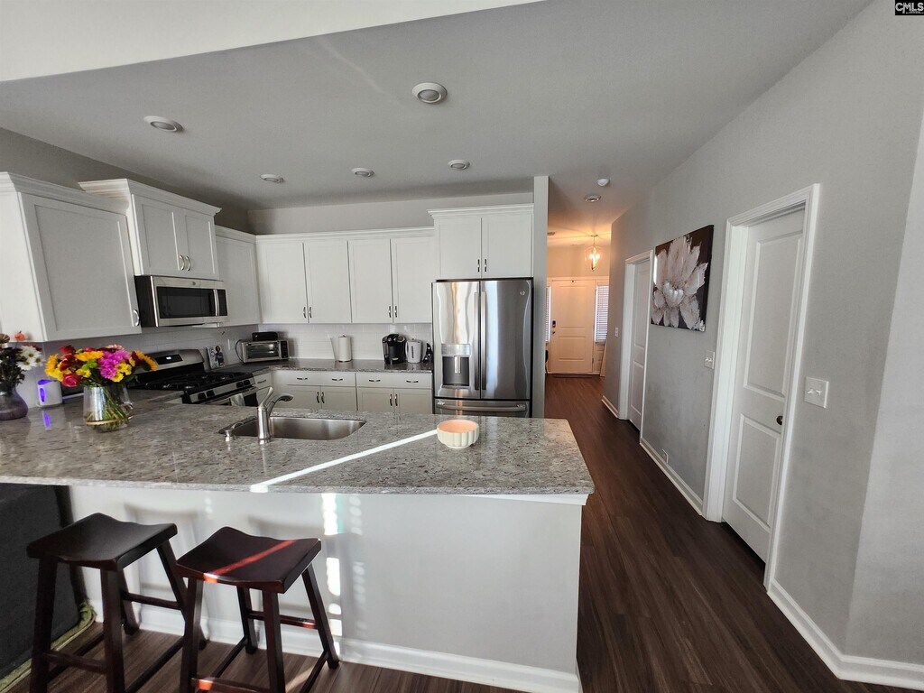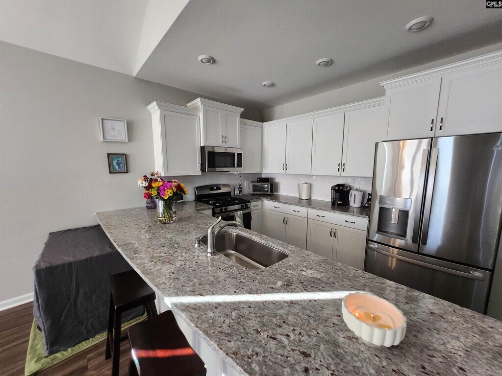 Like new home with high Vaulted ceiling in Great room and master bedroom makes this home feel even bigger. luxury vinyl flooring in living areas. Two bedroom on main floor 3rd bedroom upstairs with private full bath. Kitchen has so many upgrades including white granite countertop, shaker cabinets and stainless appliances. laundry room with cabinets above washer and dryer. Covered patio with additional uncovered patio 8x10, sprinkler plus Fence included with zero lot line. Primary bath with 5'shower and double vanity. Garage is one car plus storage or golf cart. Minutes from the interstate, prime location off of Clemson Road with quick access to I-20! Resort-style community amenities that include a pool, club house, playground, firepit and hammock garden! Located just minutes from Fort Jackson Army and Shaw Air Force bases. Disclaimer: CMLS has not reviewed and, therefore, does not endorse vendors who may appear in listings.