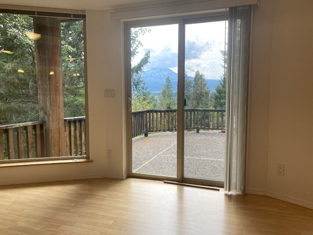 Do you love the woods and need an incredible well-wired shop? Don't miss this charming four-level, 2-bedroom, 2-bathroom home nestled in the scenic landscape of Mt. Hood, OR. The first level houses a kitchen featuring a refrigerator, dishwasher, microwave, electric range, and with European convenience in mind, a washer and dryer. A gas stove in the dining area makes a lovely dining experience, with a huge mountain view providing a perfect backdrop for your morning coffee. A half-flight up, the living area invites you with a large gas insert embedded in a massive stone fireplace. The upper patio welcomes with breathtaking mountain views for your evening relaxation. Another half-flight lands you at the primary bedroom, with an attached former bedroom-turned walk-in closet/office area giving you all the flexibility you need. The top level bedroom boasts two built-in platform beds, adding a unique and practical touch to the space. The second bath on this level is convenient to the rear door and deck. This cabin truly encapsulates the essence of mountain living, offering a serene retreat with all the modern amenities you need. FOUR-WHEEL DRIVE HIGHLY RECOMMENDED FOR ACCESS. One-year lease requirement. Security deposit in the amount of $4,125.00 plus pro-rated rent due at signing. Tenant pays all utilities, including electric, gas, water and garbage. No pets. Tenant screening criteria includes: Credit score requirement of 650+, household income verification of at least 2.5 times the monthly rent, and criminal & eviction record review*. * ALL Tenants 18+ must apply at our website. Sorry, shop was not finished at time of photos.