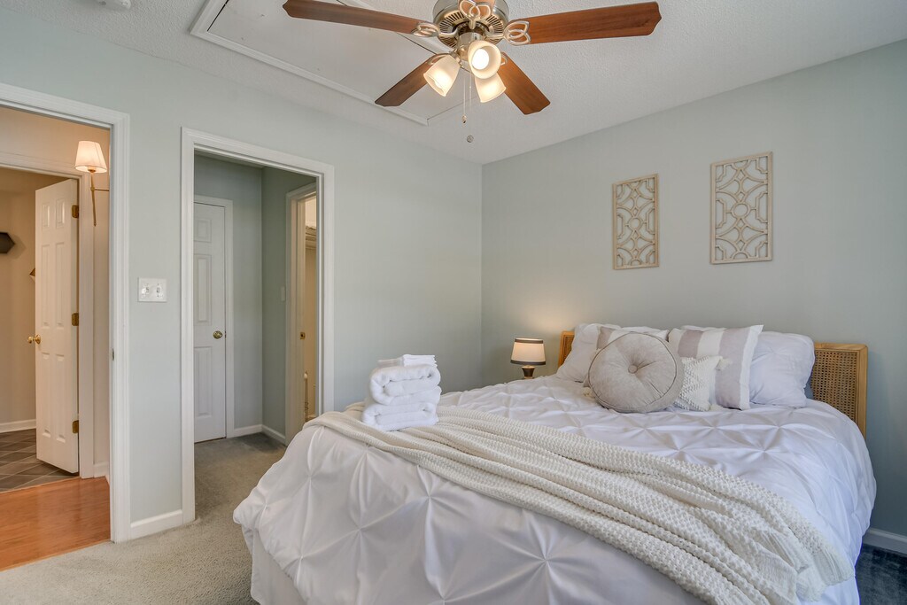 Adorable 2BR,2BA cottage located in a prime location near the heart of Evans,close to shopping,dining and the interstate. This one story,open concept living space is great for entertaining. Owner suite has a private bathroom with large walk in closet. Second bedroom features a walk in closet and bathroom attached with access from both bedroom and hall for guests. Large kitchen and dining area is fully stocked and includes all cooking essentials. Washer and Dryer is also available and right off the main living area. Outside you will find a front porch and back patio area to create a private relaxing entertaining space.