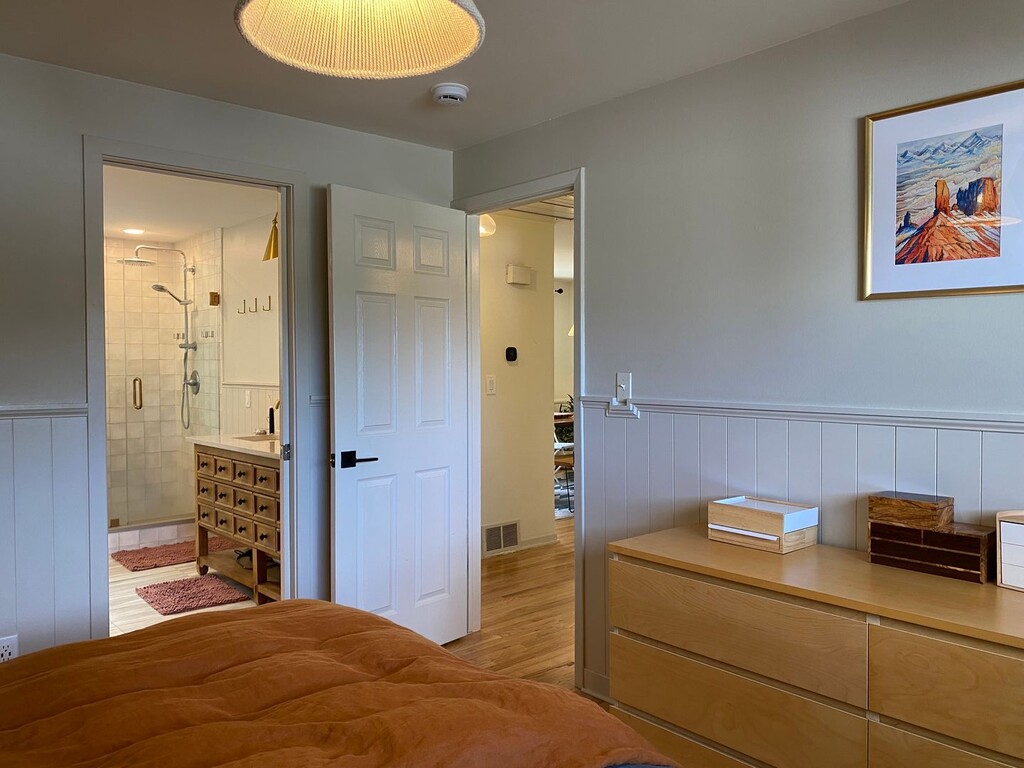 Beautifully updated 5BR/3BA home in South Boulder. Exterior: Oversized two-car garage with built-in work stations and tons of extra storage. South facing fully fenced backyard with tall privacy fencing, back patio, mature trees, garden beds, and mountain views. Front yard offers beautiful landscaping, flagstone walkways, and a sprinkler system throughout. Main Level: Walk into this home and you are greeted with an open floor plan, large windows, lots of natural light, hardwood floors throughout, and a cozy fireplace in the living room. Updated chefs kitchen overlooks the dining area, living room, and opens up to the backyard. Kitchen is stocked with gas stove, newer modern stainless appliances, marble backsplash, under cabinet lighting, quartz counters, recessed lighting, and plenty of counter/cabinet space. Bar seating at the kitchen offers flexible seating options. Master bedroom/bathroom, second bedroom and full bathroom upstairs. Primary Bedroom: High-end 5-piece bathroom with Kohler Soaking tub & oversized shower (both looking out to the backyard), double sinks, beautiful tile work, and walk in closet! Lower Level: large family/rec room, 3 bedrooms, a full bathroom, and a luxury laundry room with full size washer/dryers, a sink, cabinets, ample counter space, and a bar fridge! Dogs negotiable with extra deposit. Sorry no cats. Ideal Boulder location in this vibrant neighborhood walking distance to schools, hiking/biking trails, restaurants, Whole Foods, Table Mesa Shopping Center, and so much more. Call or email to setup a showing.