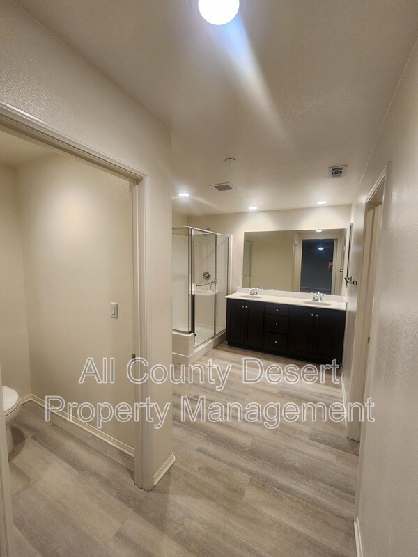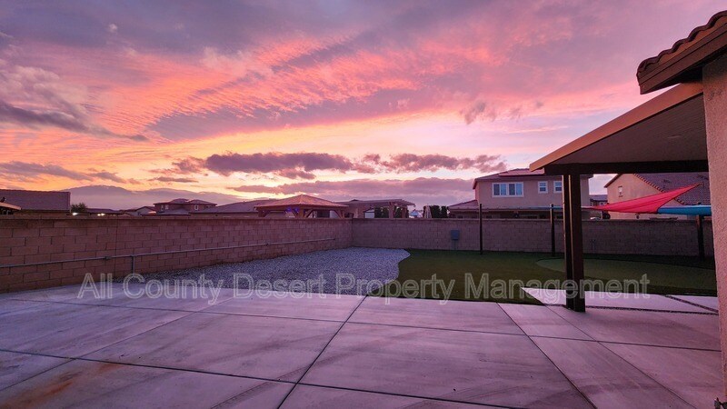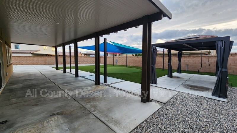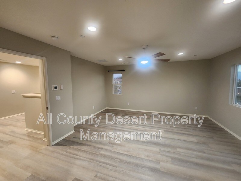 Welcome to the gated Monte Vina community in North Indio. This beautifully designed, recently constructed two-story home offers an exceptional blend of modern comfort and upscale style. The first floor features a spacious open-concept living, kitchen, and dining area highlighted by high-gloss tile flooring, rich dark cabinetry, quartz countertops, stainless steel appliances, custom window shades, and a cozy electric fireplace. Expansive patio doors open to a private outdoor retreat, perfect for entertaining or relaxing. The rear yard is thoughtfully designed for low-maintenance outdoor living and includes turf landscaping, a covered patio, a separate gazebo, and sail-shaded posts for additional sun protection. Upstairs you will find hardwood plank flooring throughout, a generously sized master suite with a walk-in closet, two additional bedrooms, and a full guest bathroom. A convenient upstairs laundry room with hookups completes the second level. The home has been freshly painted throughout. Additional features include a three-car attached garage, oversized side RV parking, and a solar energy system for enhanced efficiency. The house is wired for security through ADT if tenant would like to connect and pay for the service. Tenants pay $50 for solar, and 75% of all utilities. HOA fees are included in the rent. Please note: The casita is rented separately and is not included with this home. The casita tenant has a private entrance, no access to the rear yard, and is required to park in the exterior RV space only. All applicants must pass a comprehensive background screening including income verification and landlord references. Renter's insurance is required. All applicants must have the following: monthly income of at least 3 times the monthly rent, a good rental history, and an acceptable credit score. If you see this home advertised online for less than the rental amount quoted here, the ad is a SCAM. We are the only authorized agent for this property. Please email us a link to any bogus or fraudulent ads so we can report it to the appropriate authorities. Please do NOT send money to anyone who offers keys in exchange for a deposit check - especially if they are out of state. When in doubt, please feel free to contact us.