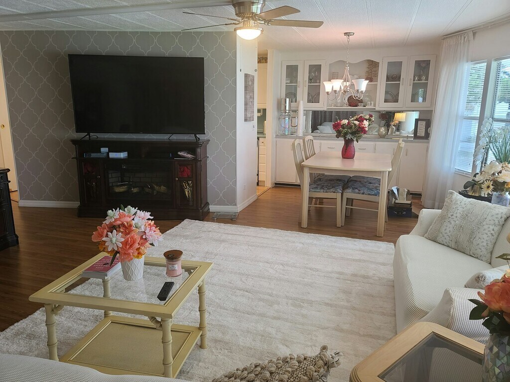 Welcome to this charming private furnished home, conveniently located 12 minutes from the beach. Free Electric, water, TV, high-speed internet and trash pick-up!! It also includes a sparkling pool, a relaxing hot tub, a rejuvenating sauna, tennis & pickleball courts, fitness center with convenient showers and changing areas, putting greens and billiards. The inviting bedroom has a queen size bed with fresh bedding, providing a peaceful haven for relaxation. The bathroom has towels and a tub & shower with plenty of counter space. Natural light floods the living room and dining area with its bay window, creating a warm and welcoming atmosphere throughout. It has an additional queen size sofa sleeper with bedding. Has a 70" smart TV with a desk and free wifi. The home also features convenient storage space and efficient layout, maximizing the use of space. Outside, enjoy the lush surroundings with a private backyard and a sitting area. You are going to love the tranquility of the neighborhood. Situated in a prime location, this offers easy access to local amenities, shopping centers, dining options, and recreational facilities. The vibrant community of Boynton Beach provides a perfect blend of coastal living and urban convenience. Don't miss the opportunity to make this charming place your new home before it's gone. Experience the comfort and convenience of living in this lovely furnished home where every detail has been carefully considered to provide a delightful living experience. 1 year lease at $1,795. This is a 40 years & up community.