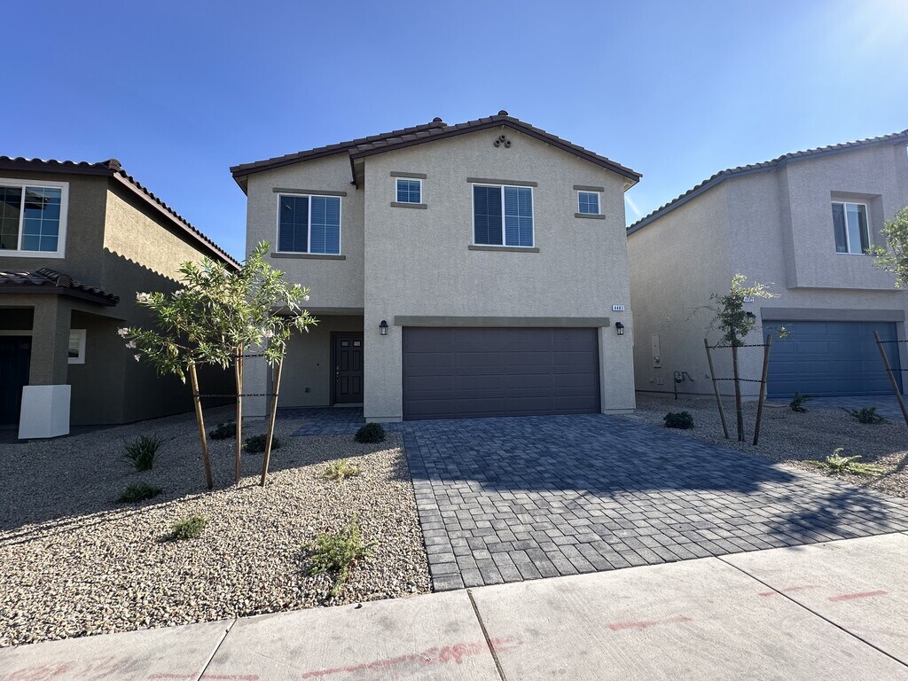 Be the first to live in this stunning brand new DR Horton home! With approximately 2,433 sq. ft., this spacious two-story property offers comfort, style, and convenience. Features include: 4 bedrooms, including a spacious primary suite with double sinks in the en-suite bath. Modern new appliances. Stylish tile flooring downstairs and cozy carpet upstairs. Bright, open floor plan perfect for entertaining This home combines fresh, modern living with a great location in the desirable South Las Vegas area.
