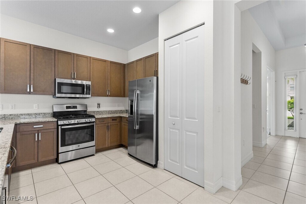 Charming 3-bedroom plus den,2.5-bath home in the coveted Stonecreek community. Features a beautifully landscaped lot,open-concept floorplan,upgraded kitchen with Granite countertops,and a stylish living area with Tile floors and Recessed ceilings throughout enhance the elegance,while the luxurious master bathroom has "his" and "hers" separate vanities an boasts an oversized soaking tub. Enjoy the lanai with lush landscaping . Stonecreek offers resort-style amenities,including 3 pools,tennis/pickleball courts,gym,and clubhouse,all within walking distance. Gas community for added comfort. Experience luxury living in Naples’ premier neighborhood. Pet with owner approval. 1st last and 1 month security. Please note this listing has been virtually staged,is an annual unfurnished rental.