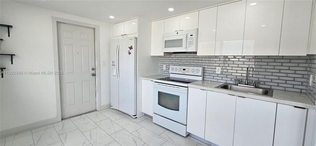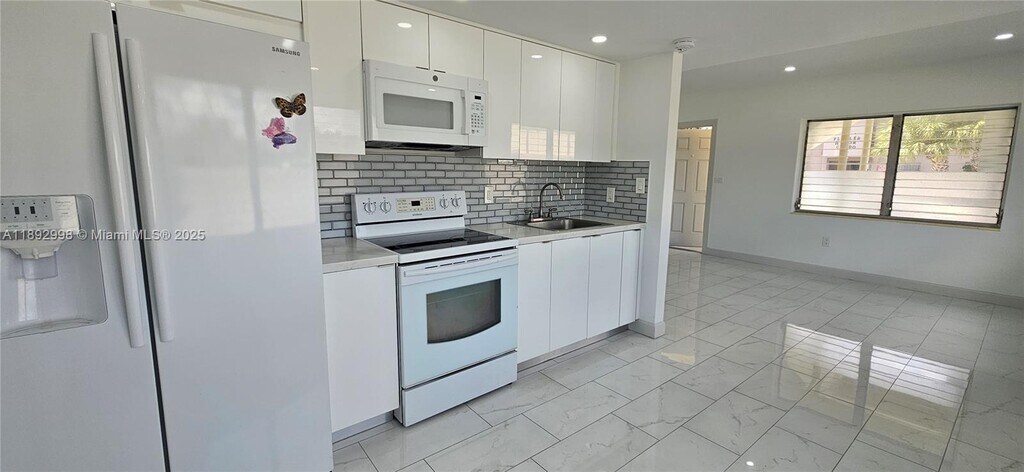 Gorgeous updated apartment featuring 2 bedrooms, 2 full bathrooms, and 2 assigned parking spaces. Located on the first floor of a well-maintained corner building. Modern remodeled kitchen, bathrooms, and floors. Bright and private corner location. Laundry room available in the building. No association approval required. Only first month and security deposit to move in! Convenient location near shops, schools, and major roads.