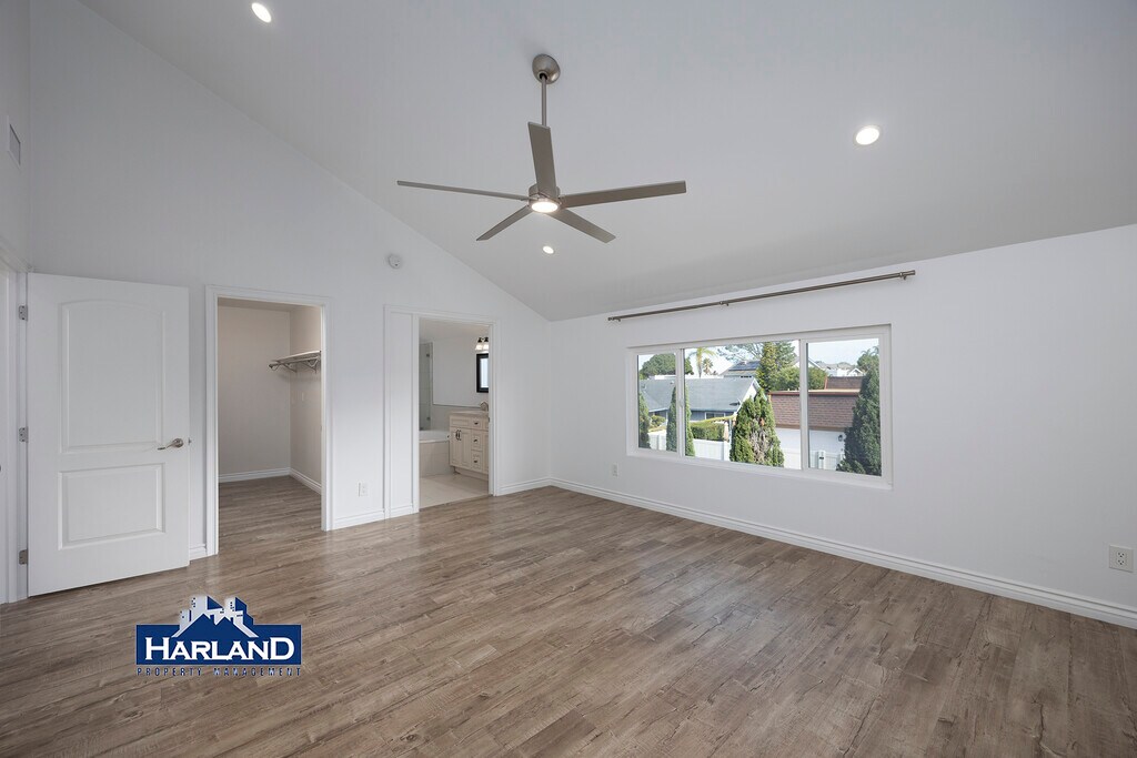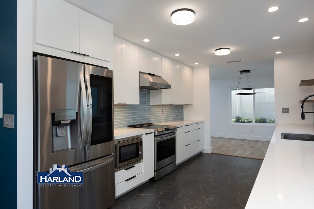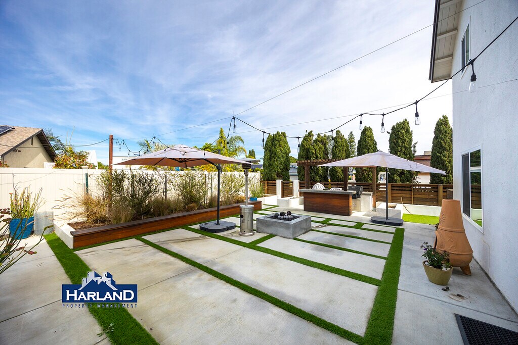 This 5 bedroom, 3 bathroom rare University City rental blends modern comfort with thoughtful design, beginning with keyless entry and a private, tree-lined exterior that adds both charm and seclusion. Pops of vibrant color greet you upon entering, setting the tone for a lively and welcoming living space. The open floor plan features vaulted ceilings, a cozy fireplace, built-in shelving, and expansive windows that flood the living room with natural light, complemented by a striking contemporary chandelier. The dining area showcases unique light fixtures perfect for entertaining or elevating everyday meals. The well-appointed kitchen includes stainless steel appliances, a glass-top electric induction range, dishwasher, deep sink, beautiful backsplash, and generous counter space, while large windows and double back doors create an airy flow to the landscaped backyard. This outdoor retreat is designed for relaxation and entertaining, featuring turf, garden beds, a dedicated dog run, a gas fire pit, and an impressive cooking area equipped with a smoker, gas wok station, and grill. Fruit lovers will appreciate the lemon, lime, orange, and avocado trees thoughtfully planted throughout the yard. A standalone casita-style recreation room (no A/C) adds flexible space for a studio, gym, game room, or creative workspace. The home offers modern, meticulously crafted bathrooms with newer finishes, including a dual-sink vanity in the primary suite, sleek tile flooring, a soaking tub, and a separate glass-enclosed shower. Enjoy space and comfort with two of the bedrooms being located on the first floor. Upstairs, the spacious primary bedroom includes a walk-in closet with built-in shelving, while all bedrooms feature hard flooring, ample storage, central A/C, and ceiling fans for year-round comfort. Additional perks include solar panels for energy efficiency and a two-car garage equipped with shelving, side-by-side washer and dryer, an EV charging outlet, and plenty of space for vehicles. Extensive hallway storage with upper and lower cabinetry provides excellent space for linens and décor. This home seamlessly blends style, function, and a warm modern aesthetic in one of San Diego's most desirable neighborhoods- well know for desirable high ranked schools and convenient location just minutes away from three major freeways, new UTC outdoor shopping center and UCSD. Additional Information: Lease term: 6 or 16 month lease Utilities: Tenant responsible for all utilities and trash Landscaping: Included Cosigners: Not Accepted Parking: 2 Car garage and driveway Laundry: In Unit Pets: Dogs and Cats (no restricted breeds) Qualifications: Minimum 650 Credit Score & 2.5x Rental Income Rental Rate Disclosure: The rental rate displayed is the lowest available rate for well-qualified applicants. Applicants are evaluated based on their credit score, income, and rental history. Applicants may also be disqualified based on their criminal record. Rental rates may vary as follows: Well-qualified applicants (e.g., credit score 700+ and or gross income greater than 2.75X the base rate): Base rate as advertised. Moderately qualified applicants (e.g., credit score 676-699 and or gross income from 2.5-2.74X the base rate): May be subject to a rental increase of up to 3.5% above the base rate. Less-qualified applicants (e.g., credit score below 650-675 and or gross income from 2- 2.49X the base rate): May be subject to a rental increase of up to 8.5% above the base rate. Automatic Denial: Any applicant who has a credit score below 650 or gross income below 2X the base rate. Any applicant who has a collection or eviction on their record from a landlord. Deposits are capped at one month's rent in accordance with California law (AB 12). No additional hidden fees apply, and we comply with all Fair Housing and Equal Opportunity laws. This does not apply to section 8 applicants. All information provided in this listing is deemed reliable but not guaranteed and is subject to change without notice. Prospective tenants are encouraged to verify all details independently
