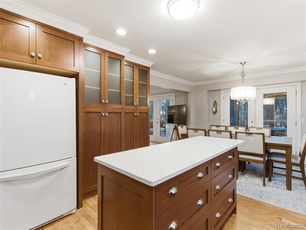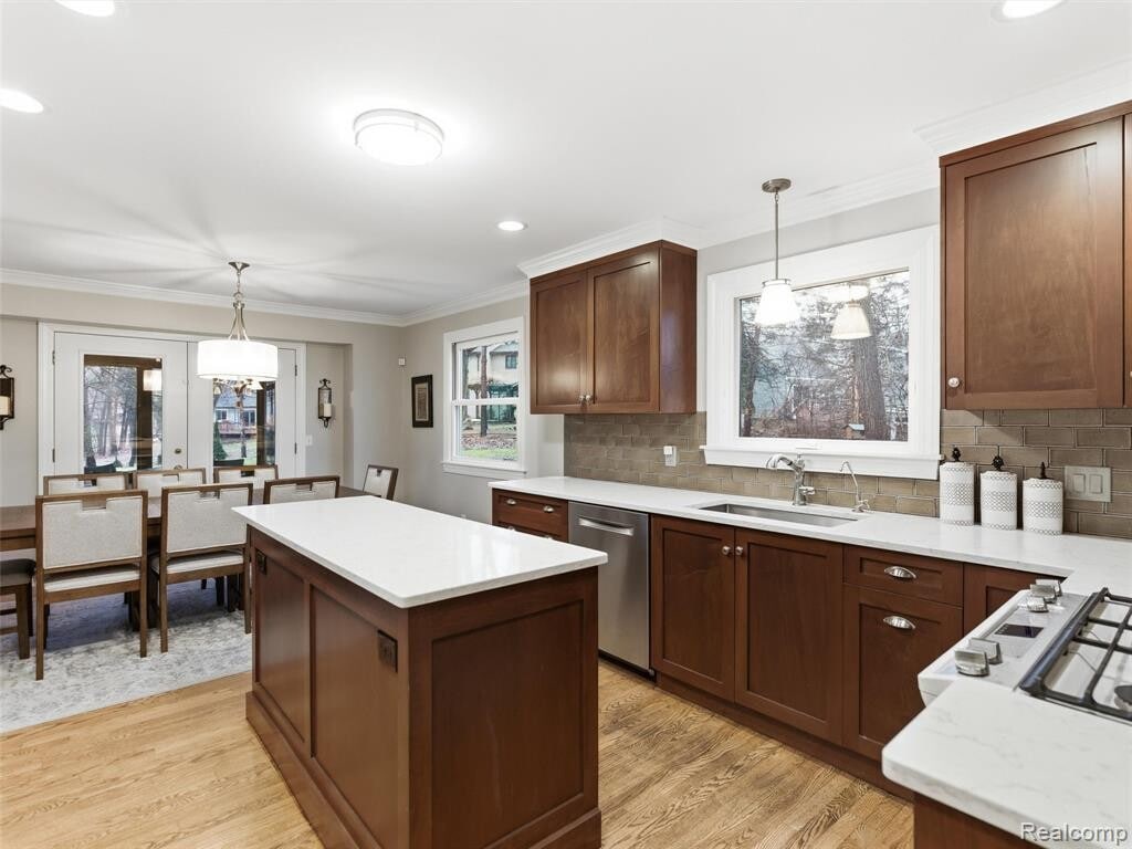 Furniture included in rent. Beautifully updated 3-bedroom, 2-bath home offering comfort, space, and privacy in a serene, wooded setting. Vaulted ceilings, crown molding, and rich wood flooring enhance the main living areas, creating a warm and inviting atmosphere throughout. Updated bathrooms offer a modern, functional design. The open-concept kitchen features floor-to-ceiling cabinetry, quartz countertops, a large center island, and seamless flow into the dining and living areas. A gas fireplace anchors the living room, perfect for cozy evenings at home. Two sets of French doors lead to a spacious deck with a screened-in section and natural-gas-plumbed BBQ grill, ideal for outdoor entertaining while enjoying peaceful wooded views. Additional features include a first-floor laundry/mudroom conveniently located off the two-car garage and a finished lower level offering exceptional flexibility. The lower level includes a large great room, two additional flex spaces, a workroom, and generous storage — ideal for a home office, gym, or recreation space. Conveniently located between Clarkston and Lake Orion with easy access to expressways, shopping, dining, outdoor recreation, and award-winning Lake Orion schools.