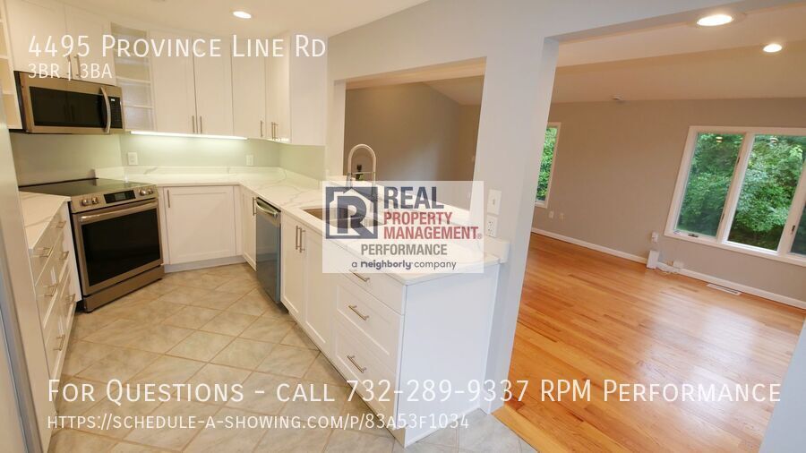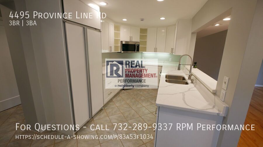 SHOWING INSTRUCTIONS: All showings will be SELF GUIDED SHOWINGS thru "ShowMojo". Please reply to all emails / texts to answer all questions and submit a copy of your driver's license to get cleared to pick a time and date of your choice for viewing the property. There is a ShowMojo lockbox on the front door of the home . You will need to have your precision location turned on on your phone upon arrival, at the time of your visit, so that it will sense your phone being within 10' of the lockbox. Once it knows that it is YOU that is there (bluetooth) it will text you a code number to enter into the lockbox with "OK" to get the keys by sliding the top button to right after green light comes on on right side of box. Be sure to replace key (leave lockbox open until you are ready to put keys back and lock back up). Property Description: This totally renovated and updated 3 BR, 2.5 Bath, 2800+ sq ft home is now available for rental in a conveniently located right off 206 area of Princeton. Oversized master bedroom Suite has a large sitting/reading/office room with 2 full walk in closets all on second level by itself, as a private suite with hardwood oak floors. The Master Bath is redone with new vanity and frameless shower doors and also has a jacuzzi tub and new toilet. All floors are either wood (oak) or Ceramic/Porcelain Tiles, or Luxury Vinyl Wood Look Flooring. Hall Bathroom for 2 downstairs bedrooms has been completely configured with all new porcelain tile, shower (frameless), 2 sink vanity new electronic backlighted mirror, and all LED lighting. Allergy friendly as there is no carpeting in house at all. Extra large Arts & Crafts room, with oversized and fully cabineted and shelved Laundry Area. 1 car oversized garage with new opener and new garage door. 2+ acres of property. Full Circular Driveway (gravel) with lots of parking. Living Room with wood burning Fireplace. All new Carrera quartz countertop in kitchen with re-painted cabinets and a Sub-Zero oversized refrigerator/freezer and new sink, microwave, stove, & oven equipped with a reverse osmosis spigot & system by the sink and fully filtered and softened water throughout the home. All recessed lighting is now LED in all rooms and halls. This super comfortable home will welcome you, and keep everyone in the family happy. 2 complete HVAC units one is brand new. Situated on a large piece of mostly wooded property that is private and quiet. Come and see this beautiful residential setting close to downtown Princeton, all highways, and to the train station for an easy commute. ROOM SIZES: Living Room - 15'5" x 16' (hardwood floors) Dining Room part of LR/DR combo area (hardwood) Kitchen (Eat In) - 15'3" x 12'8" (Porcelain) Master BR - 10'6" x 10'3" (LVT) BR #2 - 10'4" x 9' (LVT) Den / Office / BR #3 - 12'11" x 8'3" (hardwood floors) Full Bath - 7'6" x 6'7" (Porcelain) Laundry Room - 6'8" x 6'8" Ceramic Tile with door to Back Yard All New Appliances And Systems All Pella Windows And Doors All Redone New Bathrooms Bathrooms With New Toilets And Vanities And Frameless Shower Doors New Hvac (2 Units) New Trex Deck Off Slider None Updated Home And Renovated