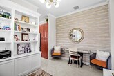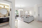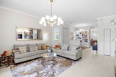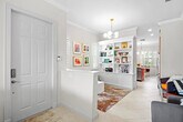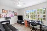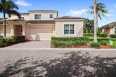Stunning custom designed unfurnished annual rental 3bd 2.5ba, 2 car garage CBS townhome located PGA Commons has spacious floor plan featuring master bedroom downstairs along w/office, living area and large eat in kitchen w/custom made table w/storage bench seating w/4 chairs, laundry room & half bath. Upstairs boasts 2 bedrooms w/full bath. Other exceptional features include, real walnut wood flooring in master, custom bookcases/cabinets, crown molding, display case, whole house water filter system, polyurethane flr in garage, natural gas, impact windows in front of TH w/accordion in back. Stepping outside onto custom paver patio w/auto awning & fully fenced yard. Walk to shopping and restaurants. Close to tennis/pickleball, golf and so much more