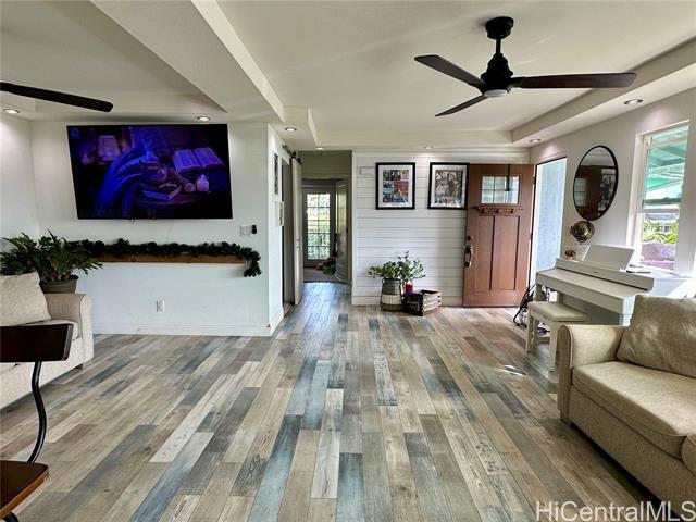 A recently renovated 3-bedroom, 3-bath single-family home located in desirable Kane'ohe Town on a corner lot. This home features a bright, open-concept living area with modern finishes, large windows, and great natural light throughout. The kitchen flows into the main living space with bar seating—ideal for everyday living and entertaining. The home had a thorough top to bottom renovation and the pride of ownership shows. Enjoy cooling trade winds and partial bay and mountain views, along with a fenced yard, 2-car garage, and additional driveway parking. The home is partially furnished and offers a functional, comfortable layout across all living spaces. Conveniently located near shopping, dining, schools, Windward Mall, and with easy access to H-3, Likelike, and Pali highways. Pets negotiable. Tenant responsible for all utilities. Home available starting mid-March. For additional information or to arrange a showing, please contact Jess at .