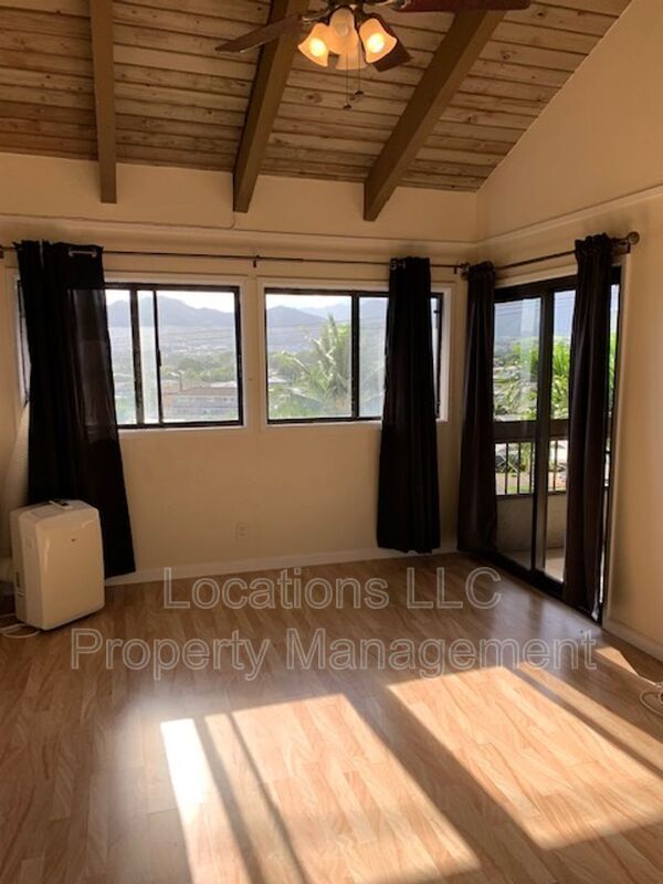 Spacious 2 bedroom and 2 bath top-level unit with incredible vaulted ceilings throughout, covered open lanai and 2 assigned covered parking stalls. Newly renovated with ceramic tile/laminate flooring, granite countertops and solid wood cabinets in kitchen and both bathrooms. New oven and water heater. Partial bay view with great views of the mountains and town. Walking distance to Windward Mall, restaurants, and stores. No pets or smoking. 20 minute commute to Pearl Harbor, Kaneohe Bay Marine Corps Base. KEY FEATURES Year Built: 1981 Living Area: 948 sgft. Bedrooms: 2 Beds Bathrooms: 2 Baths Parking: 2 (both covered) Lease Duration: 1 Year Deposit: $2,400 Laundry: In Unit Property Type: Townhouse Vaulted Ceiling, Pool, BBQ Area Ceiling Fans No smoking Includes Water and Sewer Please email to schedule for a showing: