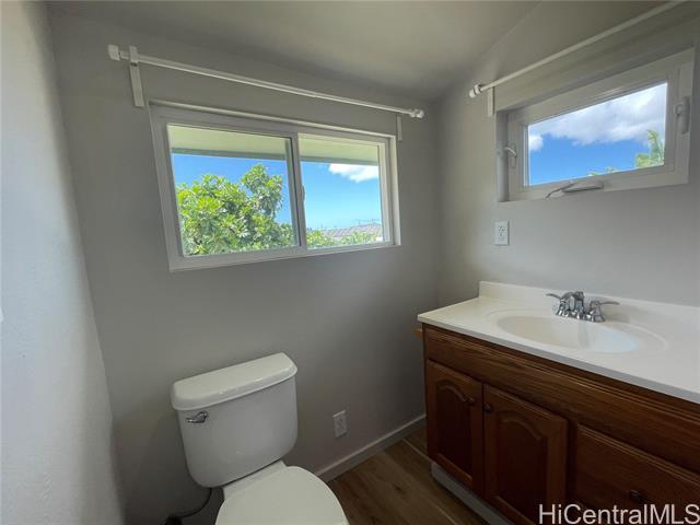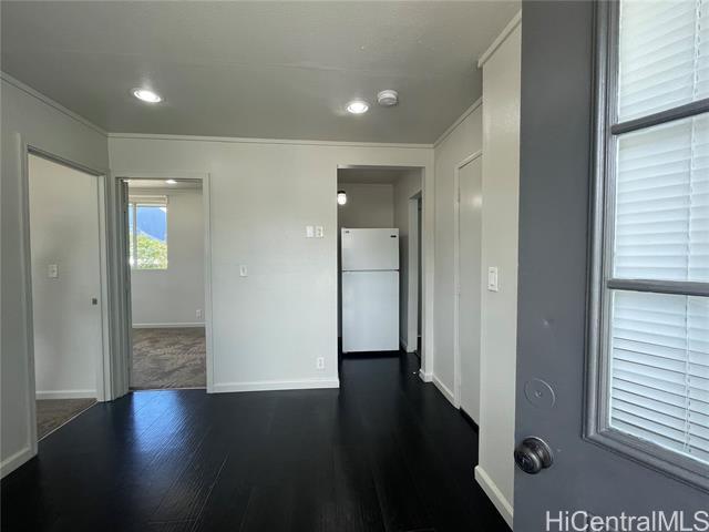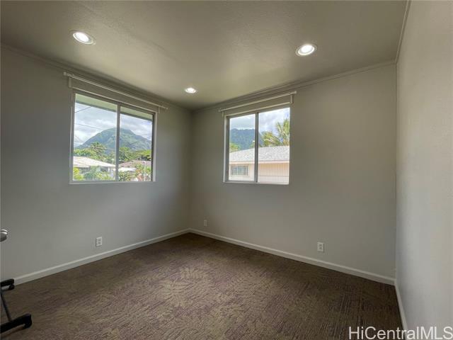 Renovated, 2 bedroom upstairs unit in a multi family home. Unit includes vinyl flooring and carpeted bedrooms, recently painted wall and updated kitchen and bathroom cabinets, counter tops and plumbing and electrical fixtures! Right in the heart of Kaneohe town, convenient to Pali, Likelike, H3, shopping, dining and more! Coin operated laundry on site and large fenced yard w/monthly yard service included. 1 assigned parking on site. Tenants are required to have renter's insurance before moving in. No pets or smoking allowed.