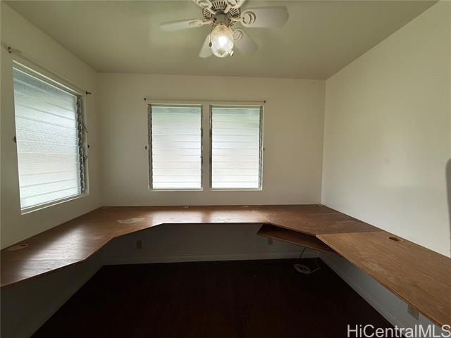 Enjoy peaceful mountain views from this single level home located in the established Kaneohe neighborhood of Pikoiloa. This home features 3 bedrooms, 2 bathrooms and a bonus 4th room with built in desk space, providing flexibility for use as a home office, craft room, study room or whatever your needs may be. The interior has been freshly painted and offers a comfortable and functional layout with laminate and ceramic tile flooring. Enjoy indoor-outdoor living with a covered lanai adjacent to a spacious backyard. Additional amenities include a two-car carport with storage closets, new washer & dryer and additional storage, offering ample space for organization. The property is ideally situated with convenient access to shopping, dining, schools, and major commute routes including H-3, Likelike Hwy and Pali Highway. No smoking and no pets. Yard service included in rent, tenant responsible for all utilities. Available March 1st.