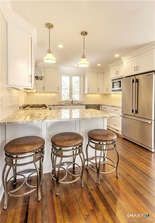 Call for Availability - Available July 1st. Beautifully reimagined Classic Colonial, ideally situated just moments from the iconic Guilford Green-the vibrant centerpiece of town life, known for its seasonal festivals, farmers markets, concerts, and community events. Enjoy being within close proximity to some of Guilford's favorite restaurants, charming shops, shoreline beaches, and the nearby train station for easy commuting. Thoughtfully updated with refined interior and exterior finishes, the freshly restored hardwood floors shine throughout, complemented by an abundance of natural light that fills every room. Step outside to a stunning stone patio-perfect for elegant evenings under the stars. This charming home also features a detached one-car garage, TWO well-appointed bedrooms, and two beautifully designed full bathrooms-offering both convenience and timeless appeal. MLS# 24167462