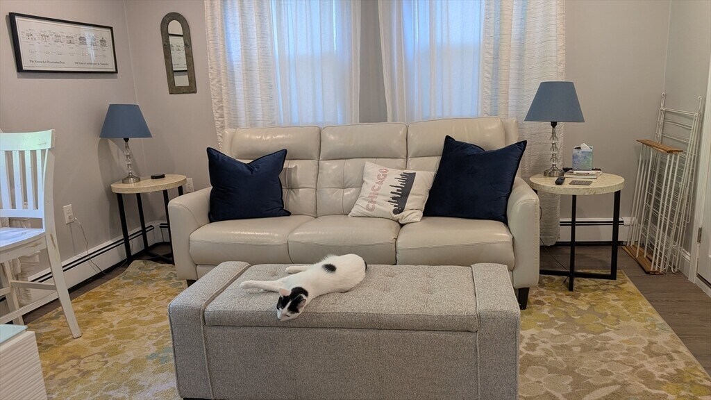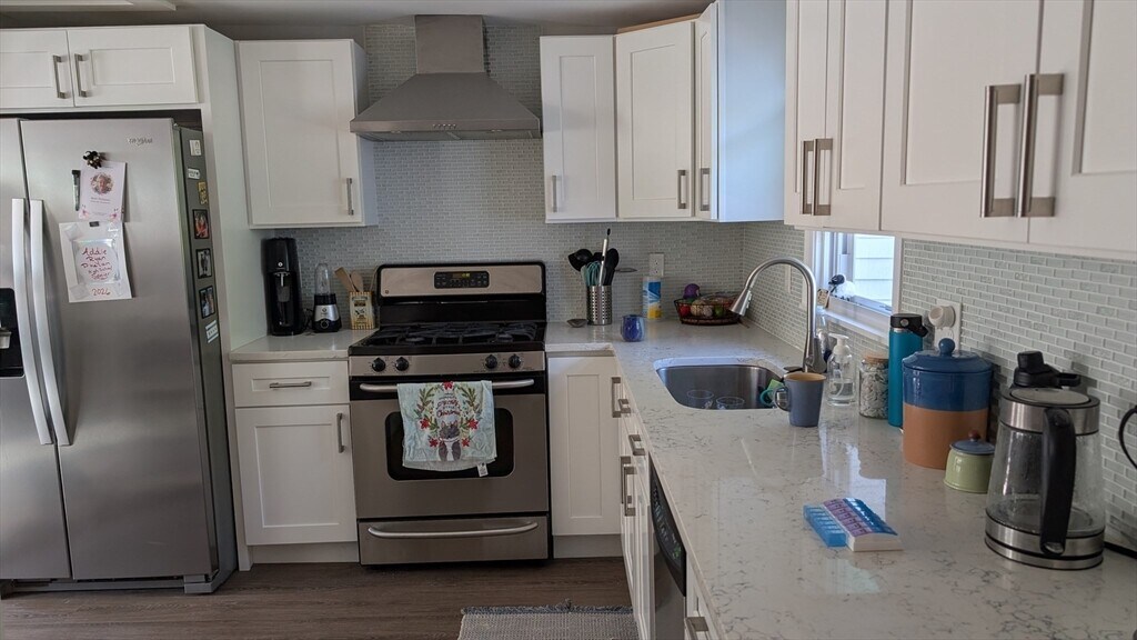 Lead Free Compliance Certified. Recently renovated. Beautiful Hingham location within a walking distance to the shipyard restaurants and commuter boat ! Take advantage of the fantastic Hingham school syustem and a beautiful library,Children's park etc! Beautiful Bare cove Park with walking trails in walking distence! Shopping & Stop & Shop 2 m inuets away! This unit has been tastefully renovated and is ready for you to move right in.Tenant pay all the utilities. The gorgeous eat in kitchen with quartz counters and stainless steel appliances has access to the private deck where you can dine al fresco. The spacious living room is perfect for entertaining. The bathroom has been recently updated and there is laundry within the unit as well. Don't snooze on this one -with its superb location and fabulous features it won't last long! MLS# 73430622