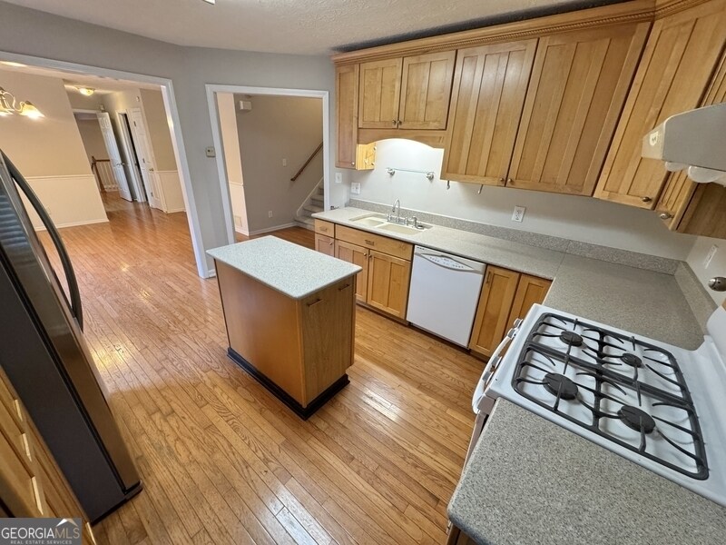 Welcome to 45 Gentry Drive - a beautifully updated home offering over 3,000 square feet of living space, located on a private, wooded lot that backs up to a peaceful creek. Nestled in the sought-after Union Grove School District, this home is perfect for anyone looking for privacy, room to garden, or simply more space to spread out. Inside, the home has been freshly painted throughout, with new flooring in most areas. The main level features a formal living room with a charming brick fireplace, a fully equipped kitchen with an adjoining dining area, and a versatile bonus room that makes a perfect home office. The spacious primary bedroom is also on the main floor and includes an en-suite bathroom. You'll also find a separate den and a convenient laundry room on this level. Upstairs, there are four generously sized guest bedrooms and 2.5 additional bathrooms, providing plenty of room for family, guests, or a flexible layout. The home also includes a large, unfinished basement-ideal for storage, a workshop, or future expansion. Enjoy the tranquility of the backyard and the convenience of a top-tier school district, all within easy reach of local shopping, dining, and commuting routes.