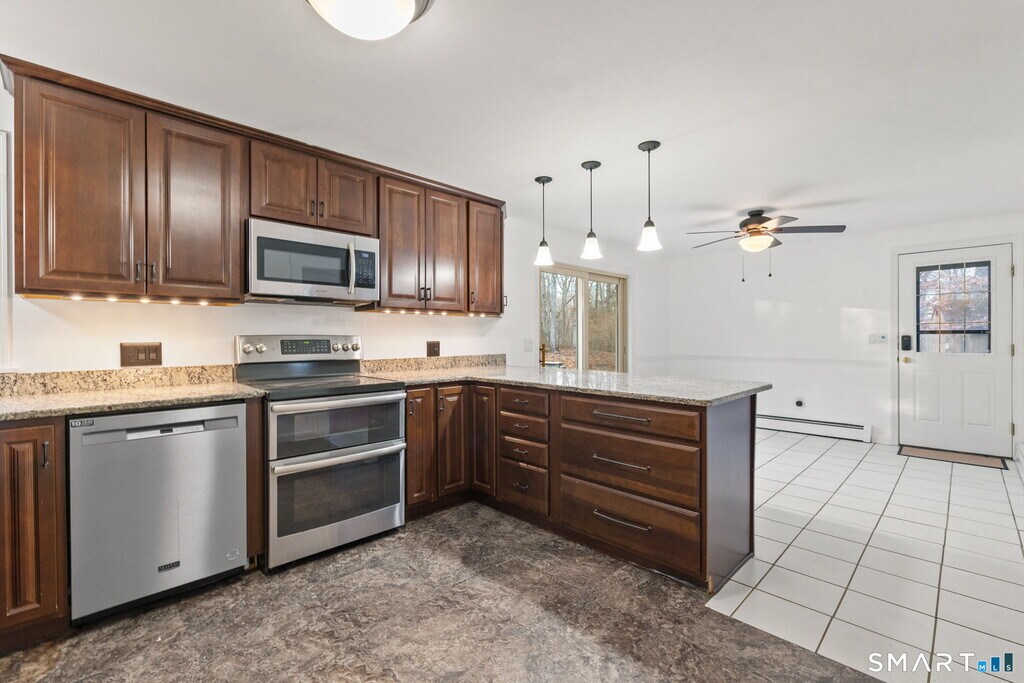 Call for Availability - Tucked away on 3.4 lightly wooded acres, this inviting Cape Cod style home offers a rare blend of privacy, comfort, and everyday ease in a peaceful Willington setting. The sun filled main level features an open, welcoming layout anchored by a warm living room with hardwood floors and a charming wood stove, creating the perfect spot to unwind. The kitchen and dining area flow effortlessly together with granite countertops, a breakfast bar, tile flooring, and sliders that open to the deck, ideal for indoor outdoor living. A main level primary bedroom adds convenience, while two additional bedrooms upstairs provide flexible space for guests, home office use, or creative pursuits. Both full baths feature classic tile finishes, with the main level bath offering laundry units already hooked up for added functionality. The partially finished basement provides bonus space for storage or hobbies, and outside, the deck, above ground pool, and shed invite you to enjoy the surrounding natural landscape. Quiet, private, and thoughtfully laid out, this home delivers relaxed country living with all the essentials for year round comfort. MLS# 24148890