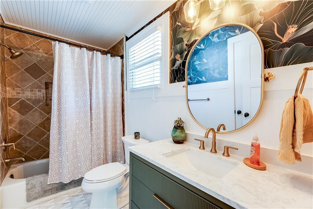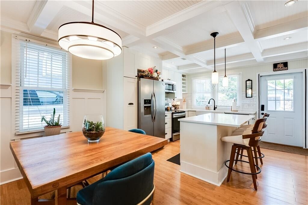 Welcome to this beautifully updated 2-bedroom,2-bath house located in the much desirable neighborhood of Edgewood. This home offers 1,104 square feet with beautiful hardwood floors throughout,high ceilings,and a bountiful amount of natural light. The open concept living room that leads into the kitchen offers a coffered ceiling,beautiful wainscoting along with built-in cabinetry that flanks the stone decorative fireplace with mantle. Located to the rear of the living room is the recently renovated kitchen featuring new granite countertops,a striking ivory backsplash,all stainless steel appliances,and a separate island that gives you extra prep space and a natural gathering spot. Both bedrooms are thoughtfully designed,while the primary suite delivers a more elevated retreat with a vaulted ceiling,french doors with direct access to the wrap-around rear patio and your private fenced in backyard. The primary bath feels polished and spa-inspired with a double vanity topped in stone,a frameless glass shower,and granite tile walls and floor. The secondary bedroom located to the front of the home with its own bathroom is suitable for roommates,guests,or a dedicated work-from-home setup. The property also features a detached garage with its dedicated driveway along with ample off-street parking. You’re just moments from 45 Moreland Shopping Area that have Wylie & Rum,That Burger Spot,Your Vitamin Lady Kitchen and Nothing Bundt Cakes as their staples. Edgewood Retail District,Little Five Points,and East Atlanta Village is only a short drive away. Shopping,dining,music,and local culture is all at your fingertips here. This property places you close to some of Atlanta’s favorite destinations while still offering the comfort of a private residential setting. If you’ve been searching for a rental home that combines thoughtful updates,standout design details,an inviting outdoor space,and unbeatable convenience,this one you don’t want to miss out. Schedule your tour now. The home will be ready for move-in on June 1,2026. MLS ID 7759556