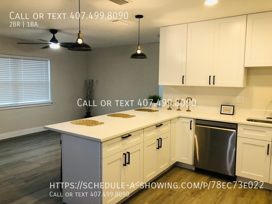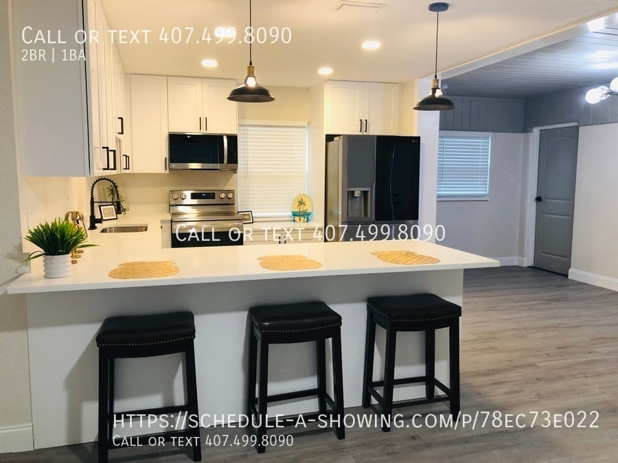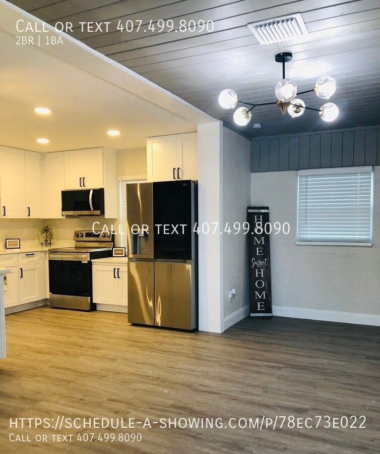 This lovely completely renovated 2 bedroom home has 1002 sq ft with a layout that feels expansive, courtesy of the open-plan kitchen that overlooks the living room and dining area. Your new home comes with an array of NEW and NEWER features, leaving little for you to do but move in! Enjoy new kitchen cabinetry and quartz countertops, complete with a suite of new LG appliances: refrigerator, range, microwave, dishwasher, along with a new garbage disposal, kitchen sink, recessed lighting, and pendant lights above the spacious peninsula that overlooks the living space. ** NEW ITEMS include Luxury Vinyl Plank (LVP) flooring throughout, windows, window blinds, water heater, ceiling fans, exterior doors, light fixtures, shower tile, toilet, bathroom vanity, bathroom fixtures, white shaker kitchen cabinets with quartz countertops, pendant lights, and ceiling fans in both bedrooms and living area. **NEWER ITEMS feature: Air conditioning system, roof, washer & dryer, electrical panel, and wiring. Large backyard! Come and tour the home in person in order to apply *** Fantastic location minutes from the Lake Mary/ Heathrow employment corridor and adjacent to the St. Johns River and conveniently located near parks and area attractions. Nearby retail centers with dining, shopping, and entertainment easily accessed by road or SunRail. All residents are enrolled in the Resident Benefits Package (RBP) for $49/month which includes renters insurance, HVAC air filter delivery (for applicable properties), credit building to help boost your credit score with timely rent payments, $1M Identity Protection, move-in concierge service making utility connection and home service setup a breeze during your move-in, our best-in-class resident rewards program, and much more! PET POLICY: Negotiable. All applicants must complete a pet screening profile. For pet profiles there is a charge of $30 per pet to petscreening. If no pet complete the no Pet profile or Assistance/Emotional Support No Charge. Links to apply and complete pet screening once the home is viewed in person. To schedule call . Available and ready for occupancy now!
