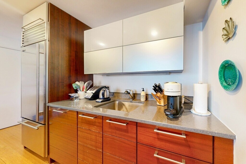 Floor-to-ceiling walls of glass frame panoramic views from every room of this 23rd floor 2-bedroom,2-bath,1,291 sf residence. The open-concept layout is ideal for modern living and entertaining,highlighted by a custom chef’s kitchen featuring Bosch appliances,Sub-Zero refrigeration,and Wolf gas cooking. Designer details abound,including bamboo flooring throughout & a spa-inspired primary bath with oversized rain shower. The versatile guest bedroom with custom walnut pocket doors doubles perfectly as a home office or study. Additional features include in-unit washer/dryer and one valet parking space. 45 Province is Boston’s premier boutique luxury community,offering 24/7 concierge,heated season pool,state-of-the-art fitness center,private dining room with catering kitchen,fireside library lounge,theater screening room,and an iconic 33rd-floor roof deck with gas grill and sweeping city views over all of Boston. MLS# 73441626