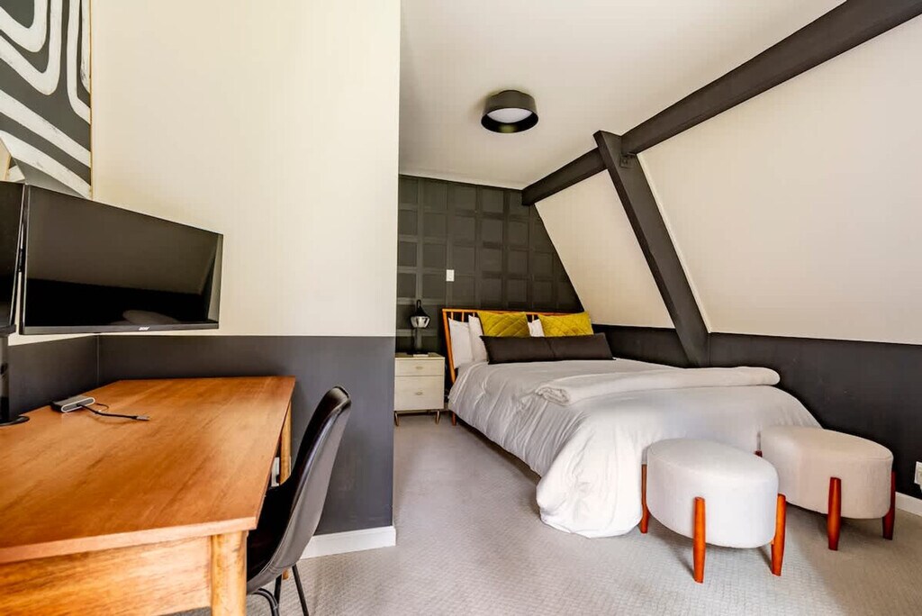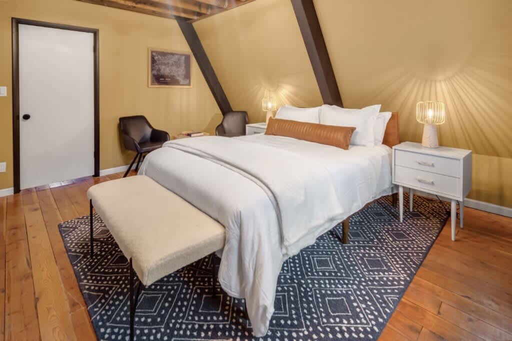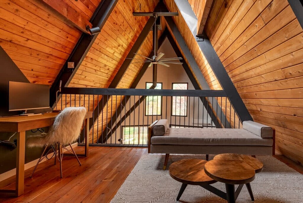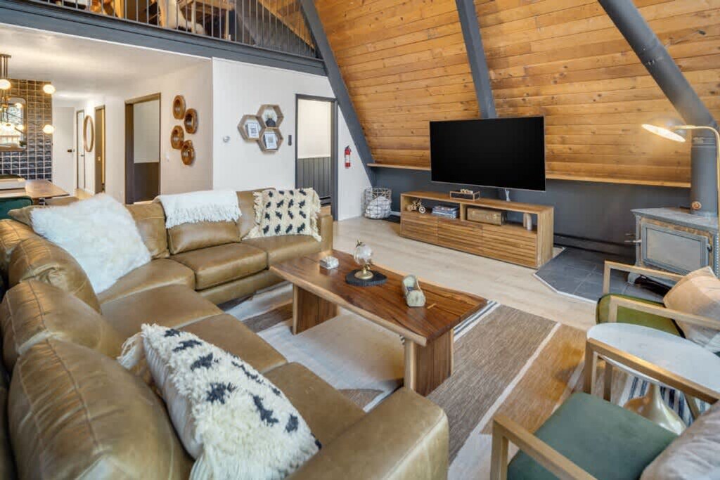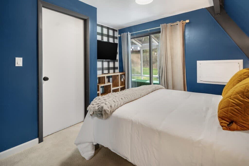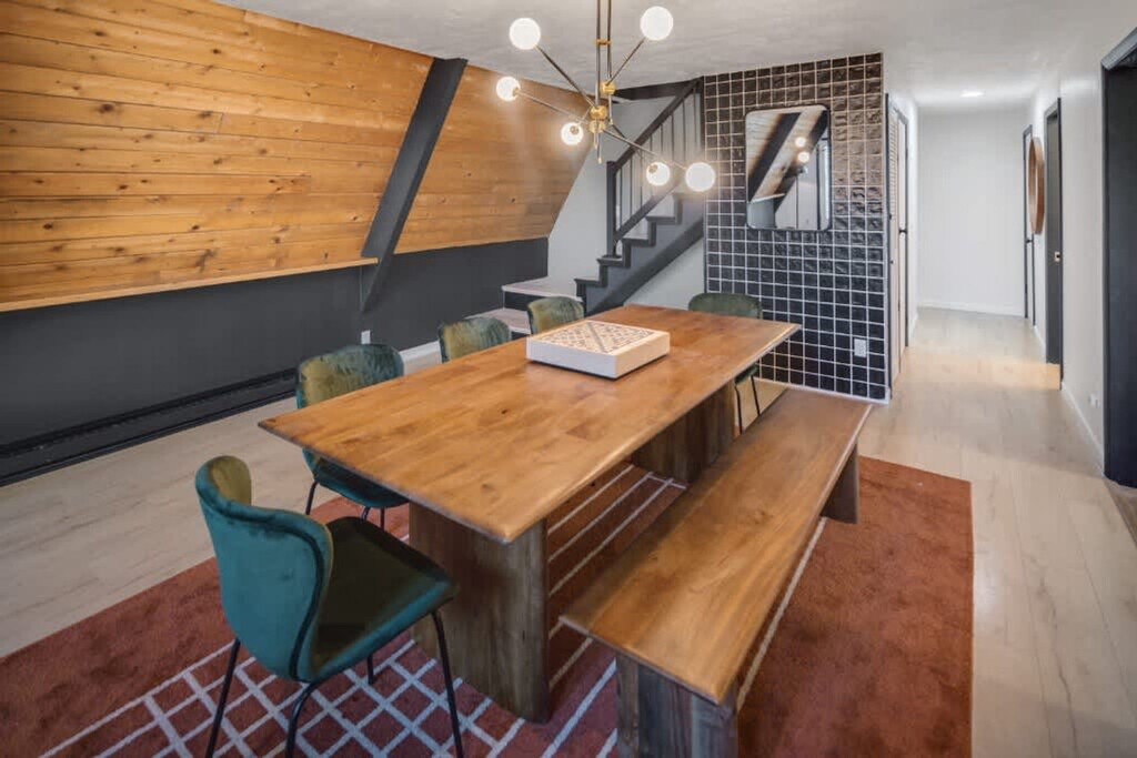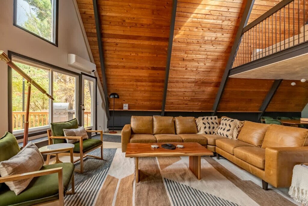 Feel at home in this revitalized luxury A-frame with all the modern amenities you need for your Finger Lakes adventure. This home features three bedrooms and a Murphy bed in the game room on the lower level. The house is located outside of town on 2+ private acres. It wouldn't be camp without a pool, so this home has a large heated in-ground pool open May 15th to October 1st. An EV charger is available. Dogs are welcome. You'll need to adventure outside of town to get this level of privacy and peace. The house is in a rural setting with a 15-minute drive to downtown Ithaca. Quiet hours are between 10:00 PM and 7:00 AM.