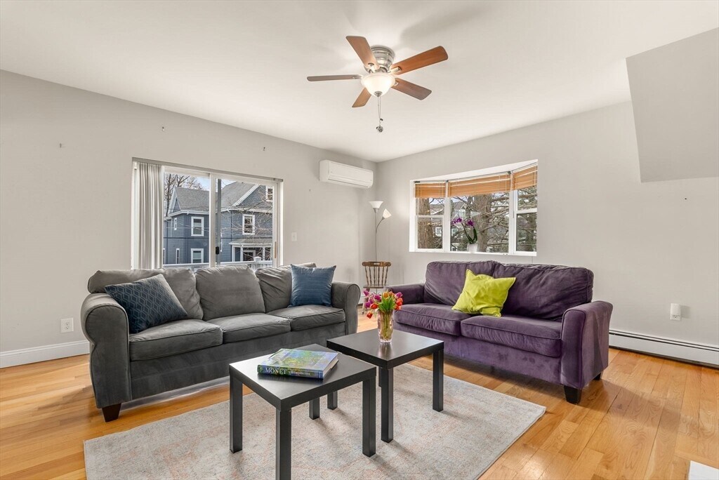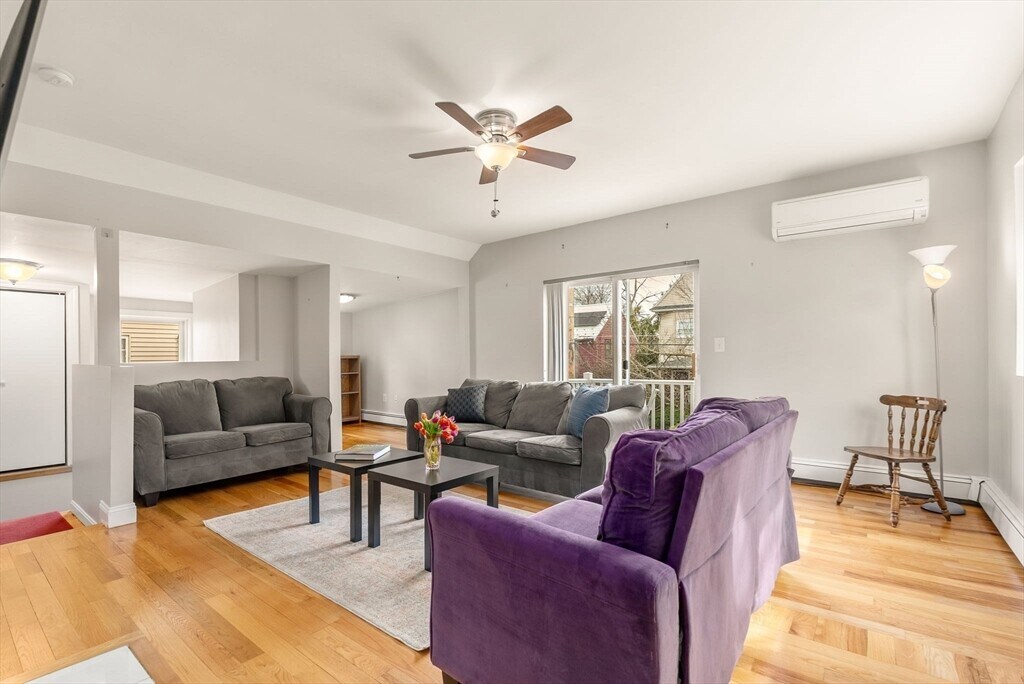 This spacious 3 bedroom and 2 full bath condo is located in a quiet neighborhood of Medford,just a few blocks from Tufts University. Easy access to public transportation (Green Line,Red Line in Davis Square,West Medford Commuter Rail,Orange Line,etc.) and approximately a 15-minute drive to Boston. Beautiful chef’s kitchen with high ceilings,granite counters,cherry cabinets,SS appliances,botanical window,skylight,and tracking lights. In-unit laundry is located next to the kitchen. Kitchen leads to a spacious and bright large living room with ductless AC,a 60” television,an extra office nook,and private front balcony space. The primary bedroom has ample closet space,a skylight,ductless AC,private back balcony,and its own full bathroom. The other 2 bedrooms are spacious with closet space as well. The condo shares a space in the backyard with an elevated deck under a gazebo structure with solar-powered bistro lights. 1 car off-street parking and plenty of street parking. MLS# 73489945