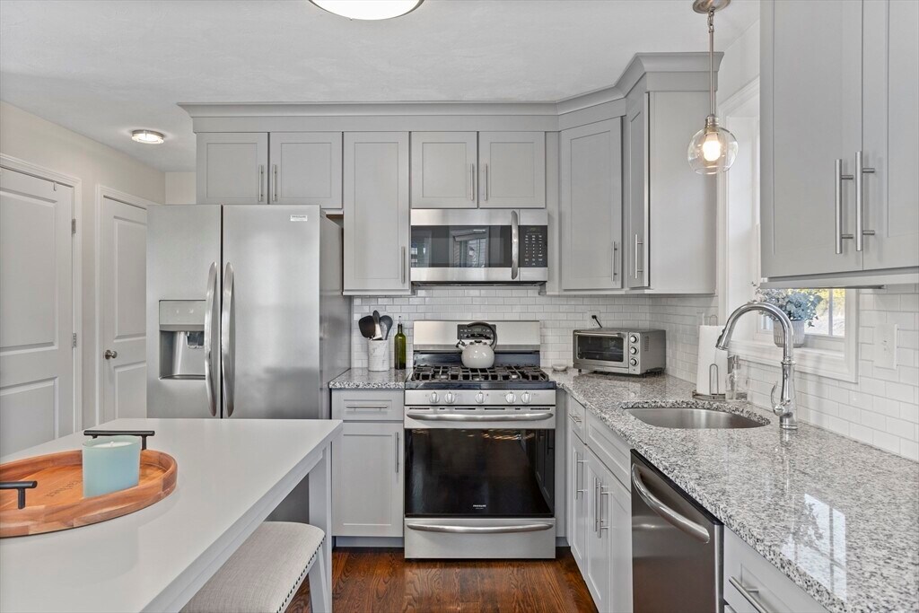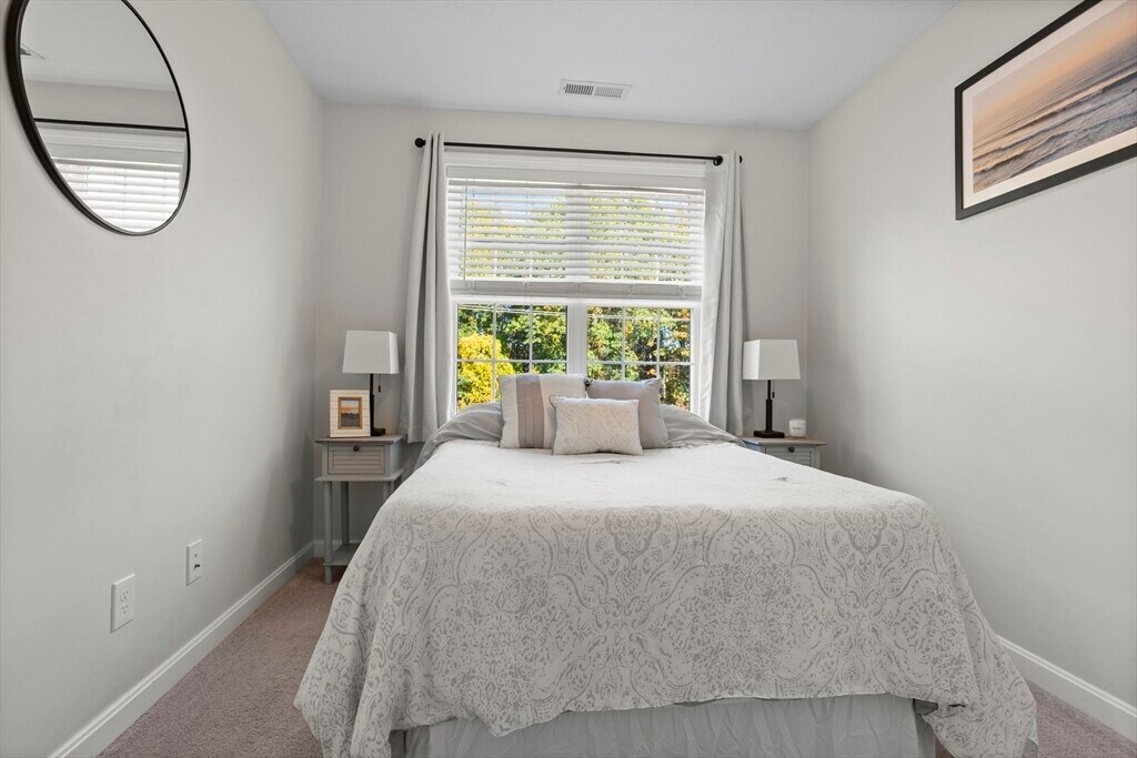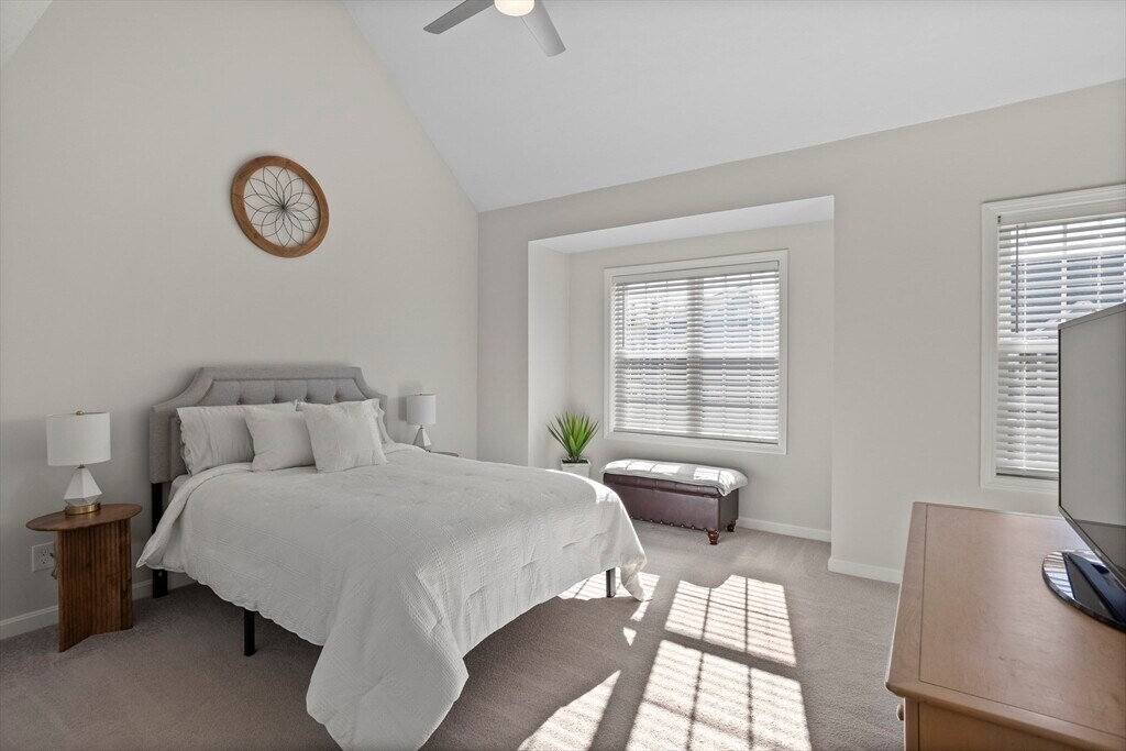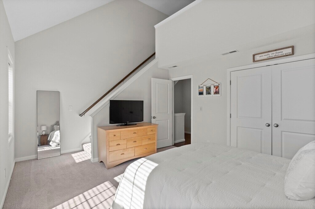 Don't miss out on this pristine Tyngsboro Crossing condo! Imagine coming home to your large,open-concept living room and kitchen/dining areas featuring beautifully stained hardwood floors and plenty of natural light. The eat in kitchen has stylish gray shaker style cabinetry,granite countertops,a convenient center island,stainless steel appliances,and exterior access to a private deck/outdoor space with plenty of room for your grill. There is a half bath on this level and access to the basement,which is a perfect storage area or flex space. The second level of the home features two bedrooms and full bath. The primary bedroom boasts an airy vaulted ceiling and a large loft space as well as additional storage area. Enjoy easy condo living in a wonderful community close to shopping & Rt 3. There are 2 deeded parking spaces and visitor parking right outside your front door. Schedule a showing quickly,this will go fast! MLS# 73463902