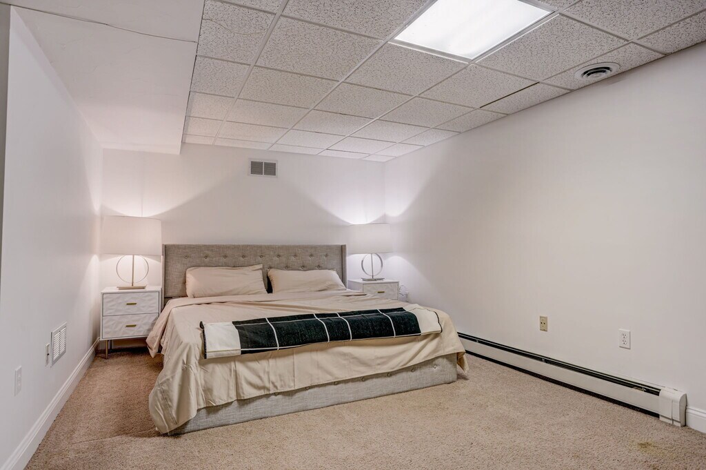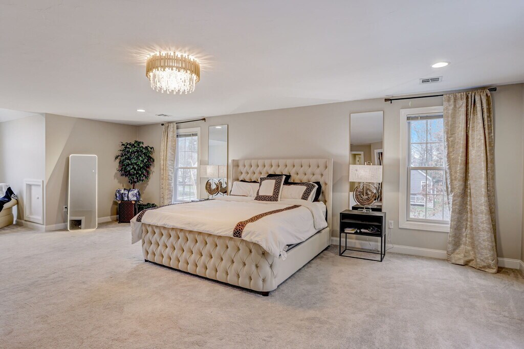 Stylish- Spacious- Comfortable- Elegant. This colossal home with modern design is perfect for whisking away with friends or family. Whether you want to hop on the highway and drive half an hour to enjoy Boston/Providence, carpool over 15 minutes to Gillette Stadium for a game or event, or even just immerse yourself in a nature filled adventure around the beautiful town of Franklin you can rest assured you will be returning to a home that can make even the most normal evening feel special. The Space: This home features 5 bedrooms (one being a master bedroom) with 5 king sized beds in each of those rooms respectively. Upstairs you'll find the master suite. In the suite is the master bedroom and master bathroom which includes a shower and SAUNA in one and a jacuzzi bathtub. Down the hall from the suite you will find the other 4 bedrooms and additional full bathroom with shower and tub. The main floor features the office, the dining room, the living room, the kitchen/eating space, a half bathroom and an additional room adjacent to the garage entrance. The fully finished basement has an additional bedroom, a living area space, a smart flatscreen TV, and a full bathroom with a shower. Guest access: Guests will have access to the entirety of the house. Other things to note -15 minute drive from Wrentham Outlets shopping. -15 minute drive to Gillette Stadium. -5 minute drive from Franklin train station for easy access to Boston/Providence etc. -40 minute drive to downtown Boston. -35 minute drive to downtown Providence. For any tour inquiries, please feel free to reach out to us and we will organize a call to discuss more. Owner will provide furnishing for entirety of house (same furniture in pictures). Willing to make concession on rent if renter is willing to pay months up front in advance. Renter is responsible for utilities.