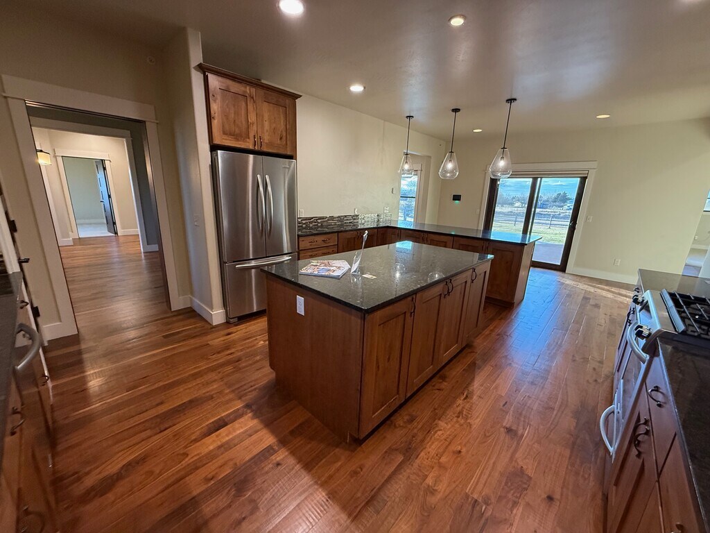 Month to Month Lease! Looking for a spacious home with a view? Look no further! built in 2013 This 5 bed 3.5 bath corner lot house sits on 1.81 acres with a fantastic 360 view of the mountains. Since this home is in Springhill it is secluded from the noise and bustle of town but close enough for an easy drive to dining, groceries, and shopping. Through the front door you will find a large dining room to the right, and a hallway with three bedrooms and a full bath with a double vanity sink to the left. Straight ahead is the living room with a beautiful stone gas fireplace. Next you enter into the kitchen with stainless steel appliances, a large island, a gas range, granite countertops and a pantry with all of the cabinet space you need. Throughout there are hardwood floors with only the bedrooms and living room being carpeted. The right side of the house hold access to the three car garage as well as a half bath, laundry room with washer and dryer included and an extra refrigerator, the downstairs access, and the master suite. The master has a door straight out to the large patio and fenced in back yard. There is also a sliding door from the kitchen to this space. The master bath has a fee standing tub along with a standing shower, his and hers vanities, a d his and hers walk in closets. Downstairs is a bright well lit space with light hardwood. This area includes the fifth bedroom, another full bath, a bonus room, and an enormous shop with a door that leads directly outside. No need to worry about the summer heat as this property has central air conditioning! Tenants are responsible for only gas/electric. Everything else is provided. This is a month to month contract. The lease is expected to start as soon as applicants are approved. This property is simultaneously for rent and for sale. One dog may be possible if approved. $50/month, $500 deposit. No aggressive breeds allowed. No smoking Renter's insurance required. This property is proudly offered by Platinum Property Management. Contact our office to schedule a tour today. We are available M-F 8-4 Applications can be found on our website at