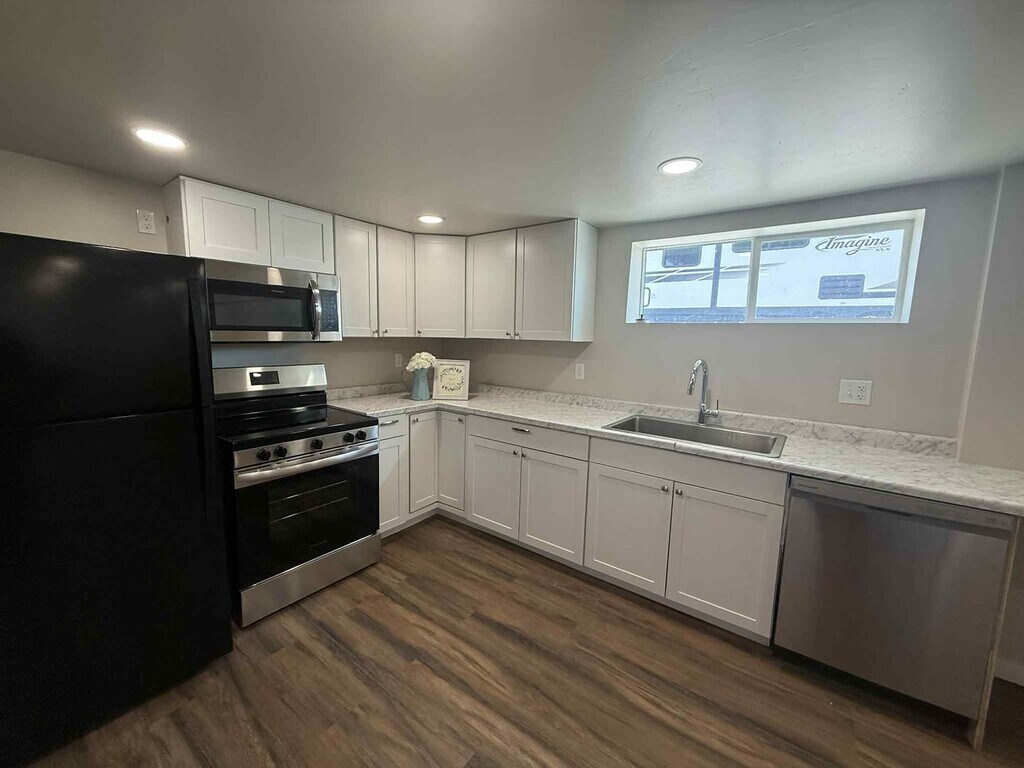This newly remodeled duplex downstairs unit features 2 bedrooms and 2 bathrooms. Enjoy the convenience of an in-unit washer and dryer, along with essential appliances including a fridge, microwave, stove, and dishwasher. Pets are welcome for an additional fee of $100 per pet. With modern updates and ample amenities, this duplex is designed for comfortable and stylish living.