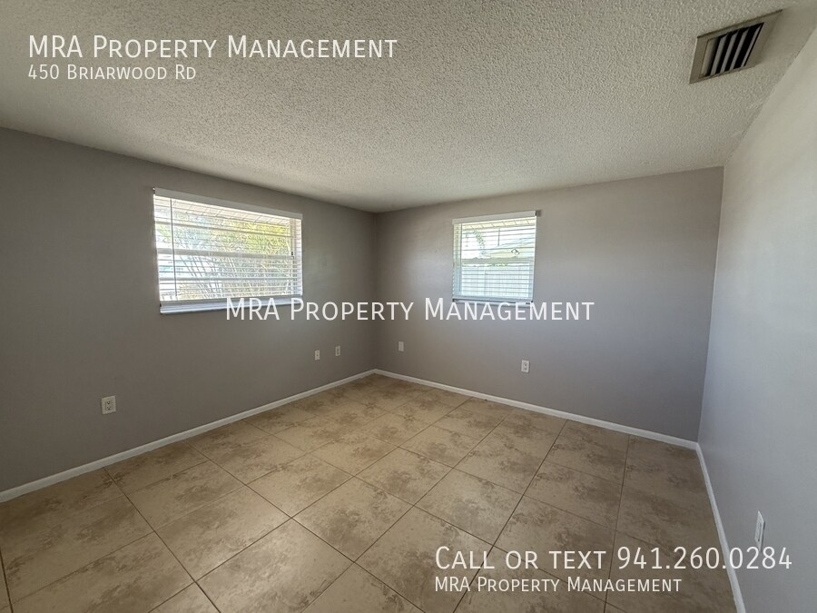 You won't want to miss this beautifully updated 2-bedroom, 1-bathroom duplex located in the highly desirable Briarwood community! Offering a bright, inviting living space, this home welcomes you with an abundance of natural light, large windows, and an open floor plan that's perfect for both entertaining and everyday living. Inside, you'll find fresh paint throughout enhancing the clean, modern feel of the home, and tile throughout, making cleaning a breeze. The kitchen is sure to impress, featuring stunning granite countertops, ample cabinetry, and stainless steel appliances, including a refrigerator, range, and microwave. A spacious laundry room with washer and dryer hookups is located off of the kitchen. Both bedrooms are generously sized with spacious closets and plenty of natural light. The bathroom is thoughtfully designed with a tub and shower combination and bright lighting. Step outside and enjoy your own private screened-in lanai—perfect for morning coffee, relaxing in the shade, or enjoying Florida's warm breezes. Beyond that, the home truly shines with a fully fenced-in yard, offering added privacy and the perfect space for outdoor living, pets, or entertaining. Pets are welcome, no aggressive breeds, with applicable pet rent. Lawn care is provided for an additional monthly fee. Conveniently located just minutes from shopping, dining, entertainment, and Florida's award-winning beaches, this home places you right where you want to be. Don't wait—schedule your showing today with MRA Property Management! We conduct a full background screening, including credit, income verification, landlord references, and eviction history. While we review the full application, a credit score of 600 or higher is generally required. For more details, to schedule a tour, or to apply, please call .