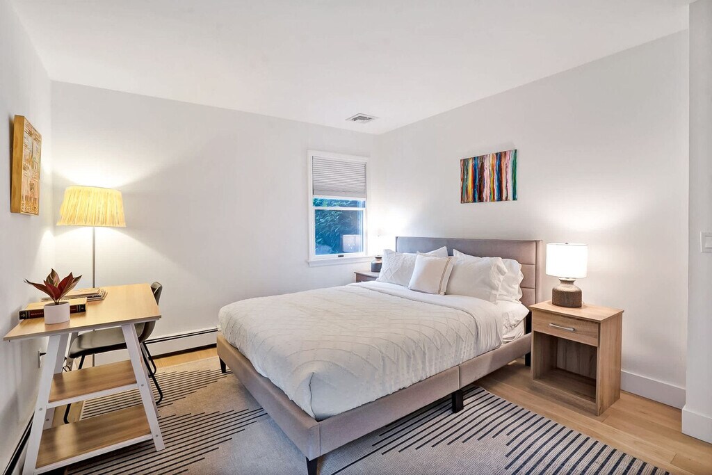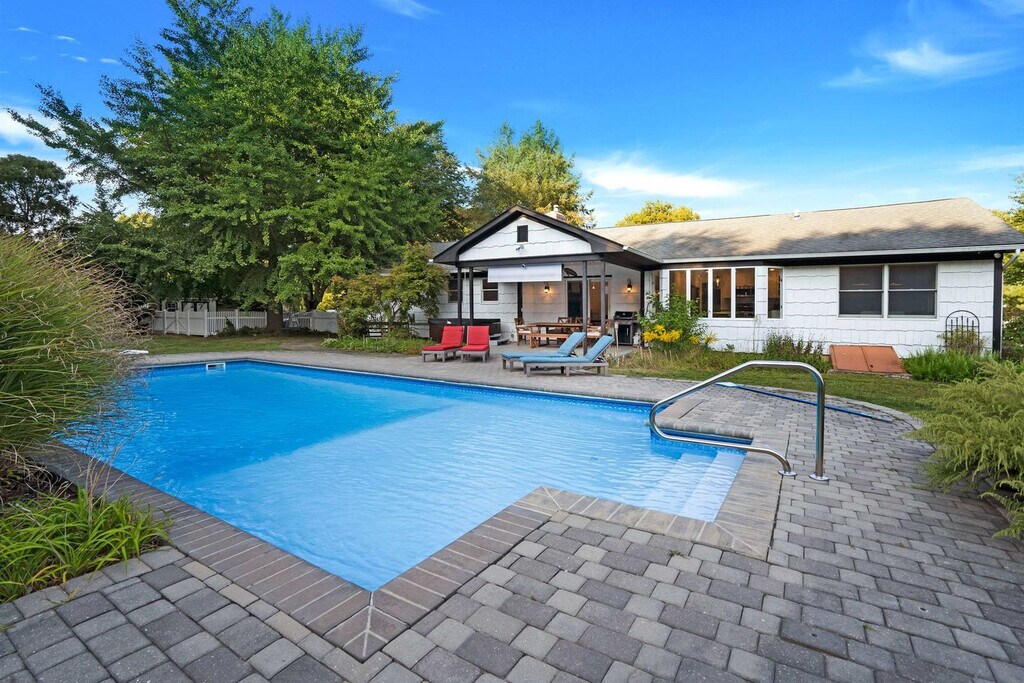 Feel at home in Respite Ranch, a newly renovated ranch-style home on a quiet cul-de-sac in the North Fork. This home is designed for relaxed North Fork living, with multiple indoor and outdoor spaces. The outdoor area features a private 9-foot-deep saltwater pool with lounge seating and a large yard. A covered patio sits just off the house and includes a gas grill and dining area. Adjacent to the patio is a six-person hot tub. Inside, the home features multiple living and seating areas, including a hearth room with a bar and wood-burning fireplace, a main living room with TV, and a dedicated dining space. Large windows throughout the home look out onto the landscaped property and pool area. The fully equipped kitchen includes stainless steel appliances and generous counter space, with a breakfast area positioned beside sun-filled windows overlooking the yard. This home sleeps up to six guests across three bedrooms and three full bathrooms. There is a standard pet fee of $200 per pet per stay, with an additional $100 potentially applying for dogs that shed excessively. For properties with a heated pool, there is a daily pool heat fee of $45. The property is subject to a $95 hot tub fee per cleaning service. Centrally located just off Route 25 and one mile from Mattituck's Love Lane, Respite Ranch offers easy access to North Fork vineyards, farm stands, restaurants, and seasonal attractions. Nearby grocery stores include The Village Cheese Shop, Lombardi's Love Lane Market, Agora Greek Market, Mattituck Marketplace, and Pattys Berries and Bunches. Nearby restaurants and bars include Love Lane Kitchen, Windamere, Mattitaco, East on Main, and Lucharitos Burrito Bar. Things to do include Macari Vineyards, North Fork Sunflower Maze, East End Bike Tours, Strong's Water Club and Marina, Pindar Vineyards, Harbes Family Farm, and Mattituck. Quiet hours are between 10 PM and 8 AM. The primary renter must be at least 25 years old. For stays over 21 days, any extra utility costs beyond the initial charged amount are the guest's responsibility. Includes a home office set-up in the second bedroom. Registration Number: 0935 [SI]