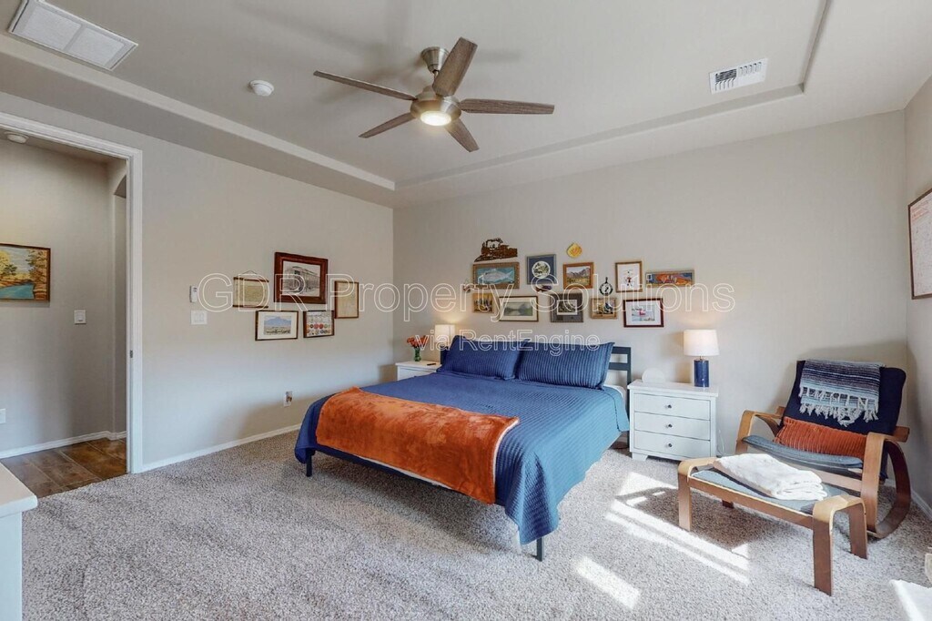 Discover your Dream Home with this pristine Hakes Brothers property in the sought-after Legacy at Sierra Vista Community. This 1649 sq.ft. residence offers 3 spacious bedrooms, 2 modern bathrooms, perfectly designed for comfort and style. Furniture not included. The heart of the home is a stunning gourmet kitchen featuring an oversized island, elegant backsplash, upgraded 8ft doors, and premium floor tiles. The open floor plan, complemented by high, detailed ceilings and ceiling fans, creates an inviting airy atmosphere. Step outside to enjoy the covered patio and low maintenance xeriscaped front and back yards, perfect for relaxing or entertaining. Built with energy efficiency in mind, this NM Green Built home is a perfect blend of style, sustainability, and convenience. Apply today and make this spacious, stylish, and low maintenance property your new home! Renters Insurance is required during the term of your lease. No utilities included in the rent ADMINISTRATIVE FEES $65.00 per adult, application fees are NON-REFUNDABLE $100.00 plus tax Lease Set Up Fee BASIC REQUIREMENTS: Verifiable monthly income of at least 2.5 times the rent, 2 months proof of your income required with rental application. Must submit a copy of a government issued ID plus one additional form of ID. Income and criminal and rental history will be verified. No smoking of any kind permitted PETS: Pets older than 12 months considered with proof of current vaccination records and color photo of your pet(s) submitted with your application. $250.00 per pet/nonrefundable pet fee. Per month pet rent - First pet $35.00 - 1 Pet Limit. A property can be held for up to 14 days after an application has been approved. Hold requires a signed lease and payment of security deposit in full. Showings are by appointment only, call or email today to schedule By submitting your information on this page you consent to being contacted by the Property Manager and RentEngine via SMS, phone, or email.