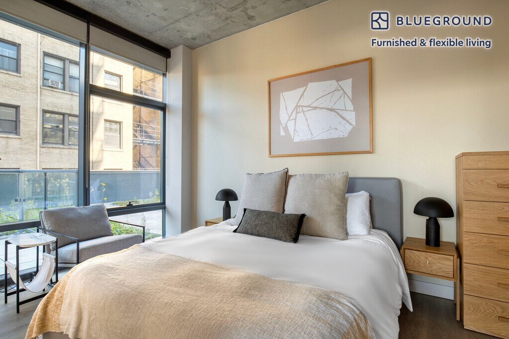 Discover the best of Chicago, with this two bedroom apartment in Lake View East. It’ll be easy to simply show up and start living in this furnished apartment with its fully equipped kitchen, living room, and our dedicated, on-the-ground support. (ID #CHI984) The advertised rate of $3,990/month is the lowest available price, based on a 1 month(s) and 29 day(s) stay with a move-in date of February 1, 2027. If you’re looking for a 1-year stay, the rate is $4,990/month. Rates vary depending on the duration of stay, season, and other parameters. For exact pricing and additional pricing components, please visit our website and enter your desired move-in and move-out dates. The rate is applicable when billed upfront; it can be higher if billed in multiple payments. Brokers are welcome to reach out. Were you looking for an unfurnished lease? Try Blueground instead and upgrade from unfurnished to furnished living: - Furnished at rates comparable to unfurnished - No setup or furniture costs - save thousands - Move-in ready - save time, just bring your suitcase Designed with you in mind Gorgeous furniture, fully equipped kitchen, smart TV, and a premium wireless speaker are just a few of the amenities you’ll find inside this two bedroom apartment. Ideally located in Chicago, you’ll find a lot to love outside as well. When you’re ready to relax, you’ll be happy to discover every Blueground bedroom comes with superior quality mattresses, fully stocked linens, and cozy towels. We handle everything so you can simply show up and start living. This apartment also offers in-apartment laundry. Sleeping arrangements Queen Bed, 63in/160cm Queen Bed, 63in/160cm Amenities Building amenities unique to this two bedroom apartment include an on-site: - Dryer - Elevator - Washing machine - Lounge - Pets allowed - Rooftop BBQ Arrival and ongoing support The entire apartment is yours to enjoy! Throughout your stay, you’ll have access to our Client Experience team through the Blueground App. You can schedule additional cleanings, submit maintenance requests, and view our neighborhood recommendations with just a few taps. We’ll share all details upon confirmation of your stay. Other things to note Building amenities may have an extra cost. This Blueground apartment has flexible lease options, allowing you to book it for one month, a year, or more. Pets are welcome, though weight limits and breed restrictions apply and may incur fees. We take great pride in ensuring every photo displayed is shot in our own units with our actual furnishings. That said, we regularly refresh our decor and furniture arrangement, which may differ from what’s pictured. Also note - This apartment has high ceilings [SI]