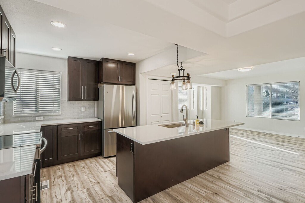 Discover this beautifully renovated townhouse in the heart of Glendale just across the street from Infinity Park. Completely updated, this home offers an open and inviting layout that connects the living room, dining area, and kitchen making it perfect for both everyday living and entertaining guests. The kitchen has been fully transformed with modern cabinets, sleek countertops, a stylish backsplash, updated lighting, stainless steel appliances, and new flooring. Every detail is fresh and contemporary. The living and dining areas feature new flooring and lighting along with a cozy fireplace creating a warm and welcoming space. Large windows bring in natural light throughout the home. Upstairs, you will find two updated bedrooms with brand new carpet. The primary suite includes a double vanity bathroom, walk in closet, ceiling fan, and private balcony. The secondary bedroom also has a ceiling fan, and the second bathroom has been tastefully updated. Step outside to enjoy the private front patio or use the two-car garage below for protection from the elements and extra storage. A dedicated laundry area completes this move in ready home. Located in a desirable neighborhood, this townhouse is close to shopping, dining, entertainment, and nearby parks. Do not miss the chance to make this updated townhouse your new home. For more information contact Pamela at Utilities: Tenants are responsible for all utilities Application Fee: $55 per person over the age of 18 (non-refundable) Upon Approval and at Lease Signing: Credit Reporting Fee: $4/month One-Time Administrative Fee: 10% of one month’s rent (non-refundable) Security Deposit: Equal to one month’s rent Pet Deposit: Additional $300 (if applicable) Pet Rent: $35/month or 1.5% of the monthly rent, whichever is greater (if applicable) Applicant has the right to provide Brinkerhoff Property Management with a Portable Tenant Screening Report (PTSR) that is not more than 30 days old, as defined in § 38-12-902(2.5), Colorado Revised Statutes; and 2) if Applicant provides Brinkerhoff Property Management with a PTSR, Brinkerhoff Property Management is prohibited from: a) charging Applicant a rental application fee; or b) charging Applicant a fee for Brinkerhoff Property Management to access or use the PTSR.