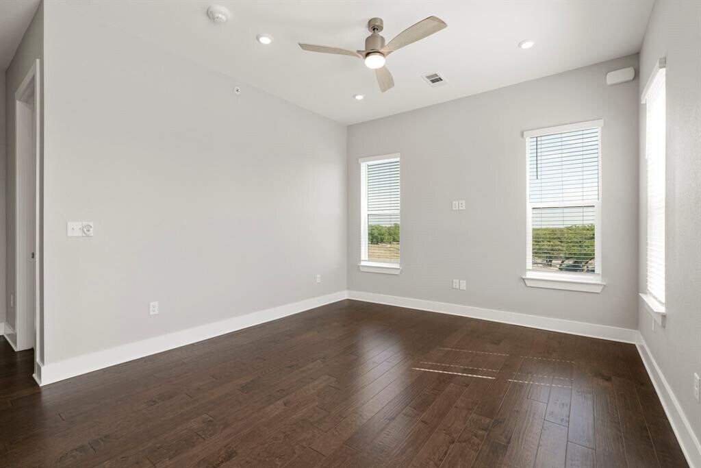 Positioned in the premier building of the four Grove Flats, this unit sits closest to the park and pond, offers direct elevator access to the rooftop deck, and captures rare water and green space views. It is a light filled corner residence that blends privacy with a connected, walkable lifestyle in one of Austin’s most desirable communities. This 2 bedroom, 1 bath home features wood floors, high end Bosch appliances, stainless steel finishes, high ceilings, and a clean, modern layout designed for easy living. Natural light pours in from multiple sides, creating an open and airy feel throughout, while the corner position provides both privacy and a unique vantage point within the community. The rooftop deck, located in this building and accessible to only a small number of residents, provides sweeping downtown views along with a clubhouse, kitchen, and flat screen TVs. It is an ideal space to relax, entertain, or unwind at the end of the day. These amenities are just an elevator ride away. Step outside and you are immediately connected to The Grove’s walkable lifestyle. Verdad, Carve Steakhouse, Ling Wu, and Tancho Sushi are all just steps away, along with local shops, fitness studios, and salon services. Signature Park and the surrounding Shoal Creek trail system are right outside your door, offering green space, shaded paths, and direct Shoal Creek access to downtown Austin and Ladybird Lake. Convenient access to Mopac makes getting to Downtown, The Domain, UT, and South Austin quick and easy. Additional features include a reserved parking space in the private garage, bike storage, and low maintenance living with HOA covered essentials such as trash, pest control, and exterior upkeep. This is a rare opportunity to lease one of the best located units in the Grove Flats with access, views, and walkability that are hard to match. MLS ID 7564416