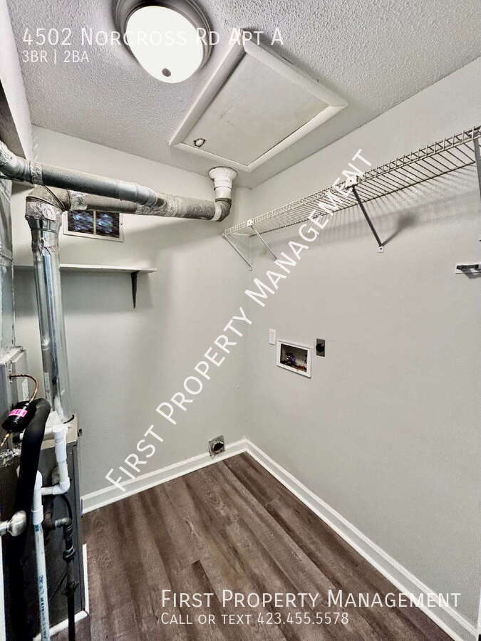 Welcome to 4502 Norcross Rd Unit A! This newly remodeled 3bed / 1.5bathroom duplex has been completely renovated on the inside. All flooring, appliances, lights, and fixtures are all brand new. It lies off Norcross and is conveniently close to everything In Hixson. Hixson Pike, HWY 153, and downtown are all easily accessible from this location. It is available for viewings through our website so schedule your self-your today! *This property does NOT accept section 8 *3 bedrooms *1 full Bath, 1 half bath *Two levels *central heating and air *washer and dyer hook ups *extra storage unit *granite countertops and stainless steel appliances *zoned for Dupont Elementary, Hixson Middle and High School *Pest control, lawncare and trash included Resident Benefits Package Included with all residential leases under First Property Management is a mandatory Resident Benefits Package. Offering extra protection and convenience to our residents, the package includes: Resident Insurance Utility setup Expedited maintenance Reimbursements towards resident-caused damages and more... Package cost is $39.99/month (plus $5 for each additional leaseholder) Pets are allowed on a case by case basis. Approved pets will incur extra deposit and rent charges assuming they are not a certified ESA/Service Animal. Security Deposits are typically the same amount as one month's rent but are subject to increase with minor issues on credit during our application review.Laundry Hookups Range (Elec) Self Showings
